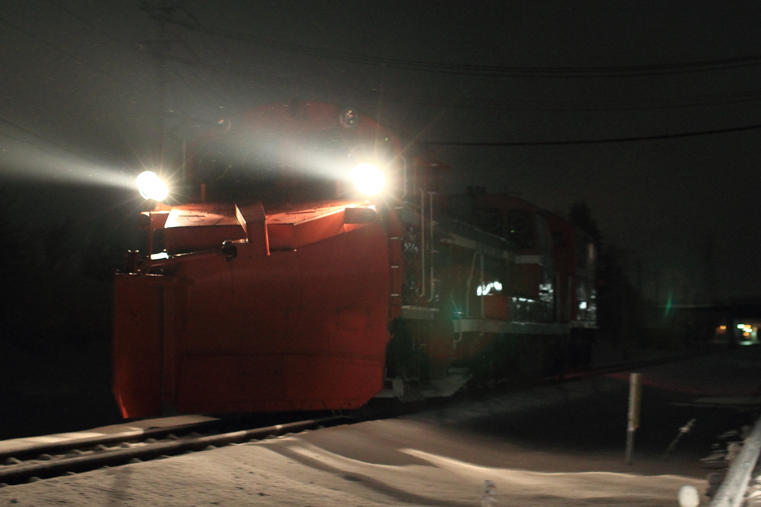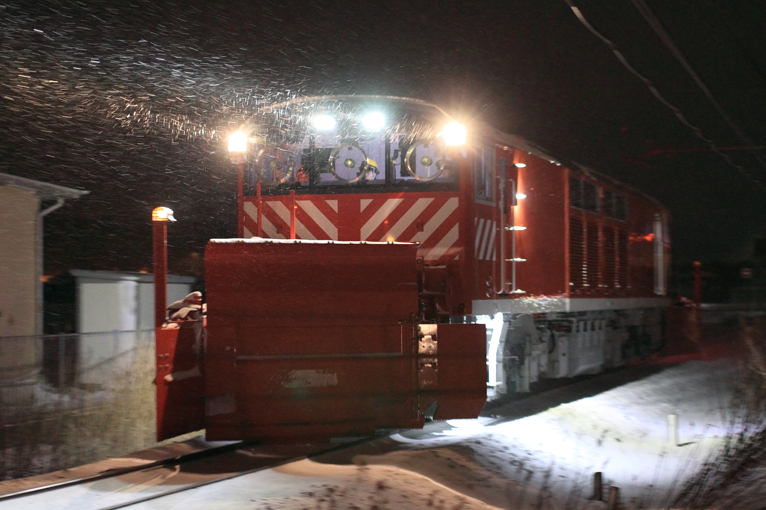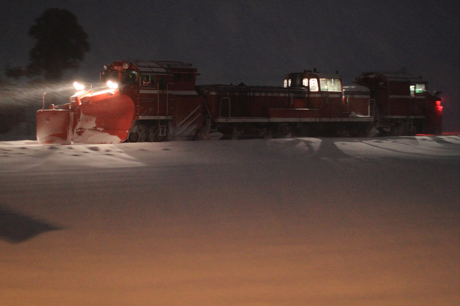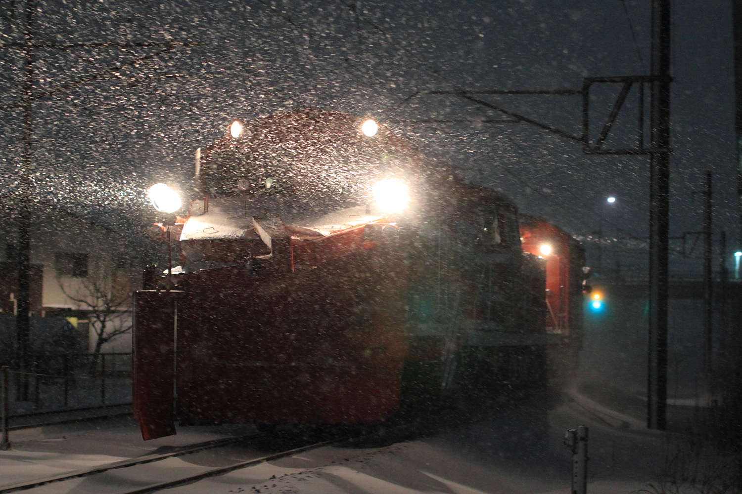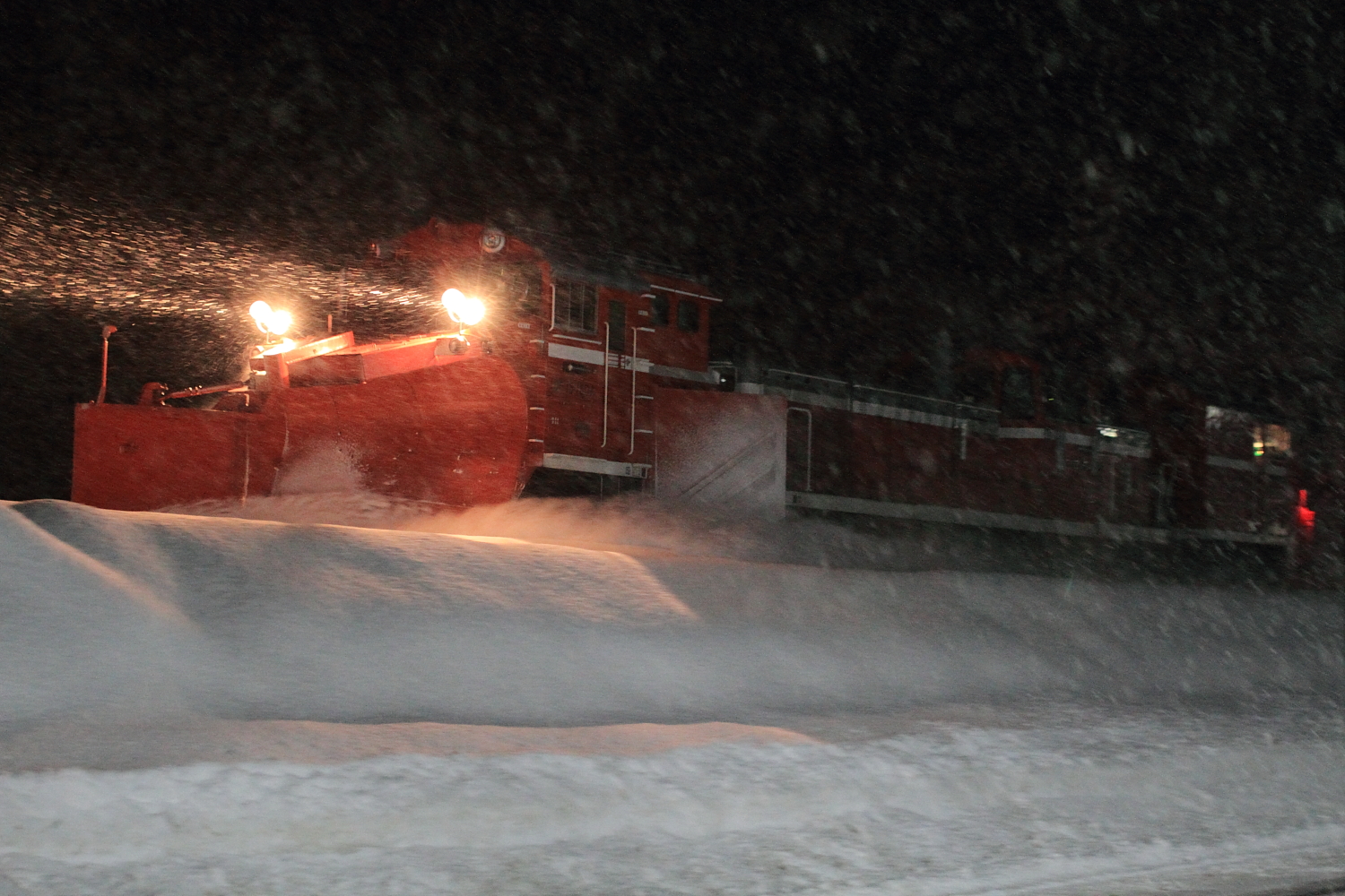 【北陸本線】雪150・雪153撮影【DE15ラッセル】 H30.1.25七尾線ラッセル撮影後、北陸本線へ。今回は北陸本線がキヤかと思いキヤ、DE15でした。 雪150DE15 1532号機ラッセルもちろん雪は無いので除雪作業は無し。しかし作業灯に加え、後方機関車の連結面と後方ラッセルも前照灯が、、、 雪153返しは斜め上からですが、時間もなく設定できずブレブレ…もちろん、作業も無し。北陸本線の雪レは初めての記録かもしれません。今年の北陸はラッセル車の出番が多く、今後も期待です。 [1回]