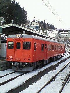 大糸線南小谷 南小谷で乗り換え。ムーンライトからの客が多数。ってかマニア列車化してる(笑)今日は3色あるうちのタラコ色、キハ52 156。実は信濃大町から先は来た事がないからワクワク♪ちらほら雪降ってきた~。 [0回]