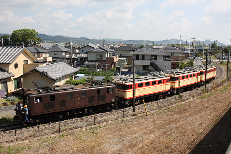 【大井川鉄道】E31回送【元西武E31】 14日地元に帰省する途中に、大井川鉄道に寄り道。先日陸送された、元西武E31形E32~E34が牽引により回送されました。陸送され、留置されているE31形その後、機関車501号機が単機回送牽引され、新金谷駅へ旧型客車(オハ47)と肩を並べるE31久々に見た、E31が大井川鉄道になるとは。今後の活躍に期待ですね。E33は部品取り、E32-E34が使われるようですが、どういった動きを見せるのでしょうか。これから大井川鉄道にも通わなければ!! [0回]PR