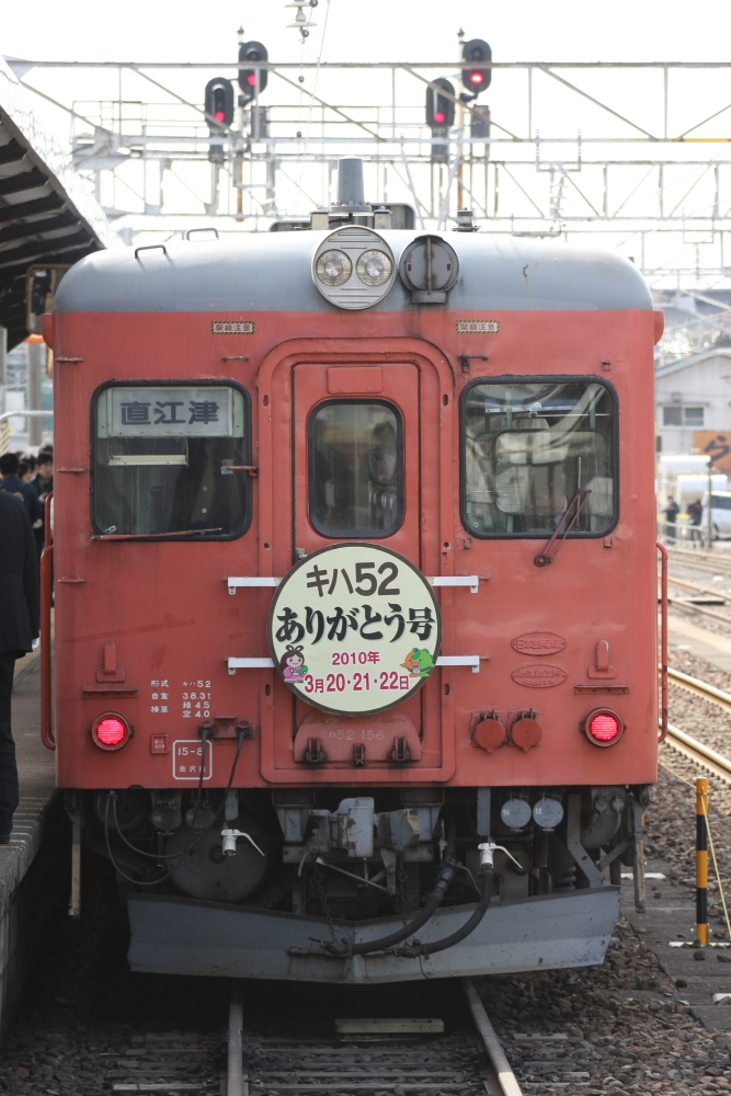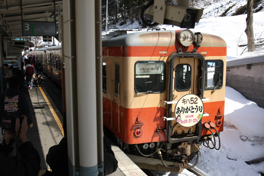 【大糸線】キハ52ありがとう号運転【キハ52】 22日20~22日の3日間、大糸線にてキハ52の3重連のラストランが行われた。忙しくて、22日しか行けなかった…。最終日、南小谷→糸魚川間のみ乗車しました。そして、3重連での最初で最後の回送…?@市振現在、富山貨物にて留置されています。今後はどういった動きを見せるのか… [0回]PR