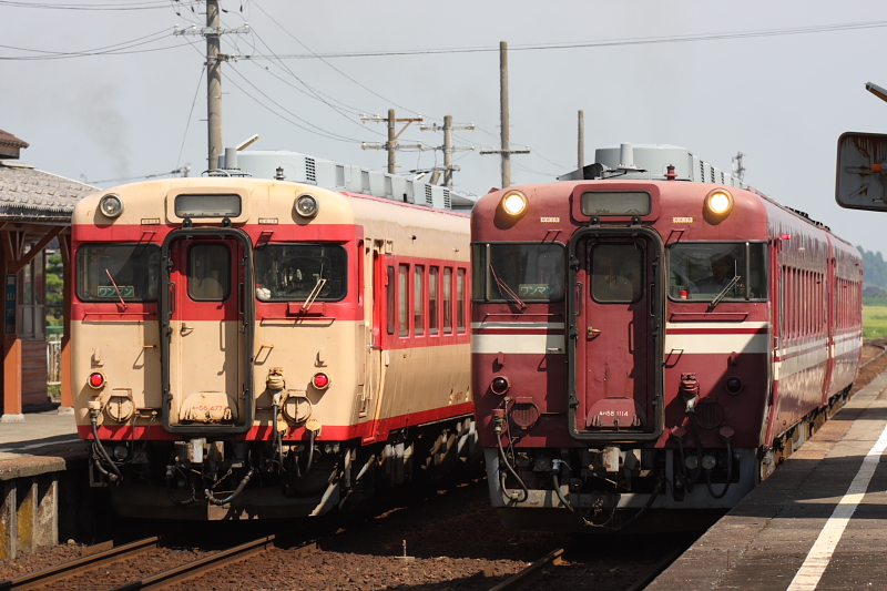 【高山本線】おわら臨など【キハ28・58・40・120】 2日今年もやってきました、八尾の「おわら風の盆」。ワタクシは転勤したので、今年は客として参加。笑っても、去年同様撮影しまくり。始発からキハ28・58!1~4日はなんとキハ28・58代走です。キハ120の先頭は、現在大糸線で活躍中。キハ28・58は猪谷まで入線キハ40も代走に。国鉄色キハ28・58は定期運用から。千里駅での離合。もうたまりませんな。キハ好き大集合でした。 [0回]PR