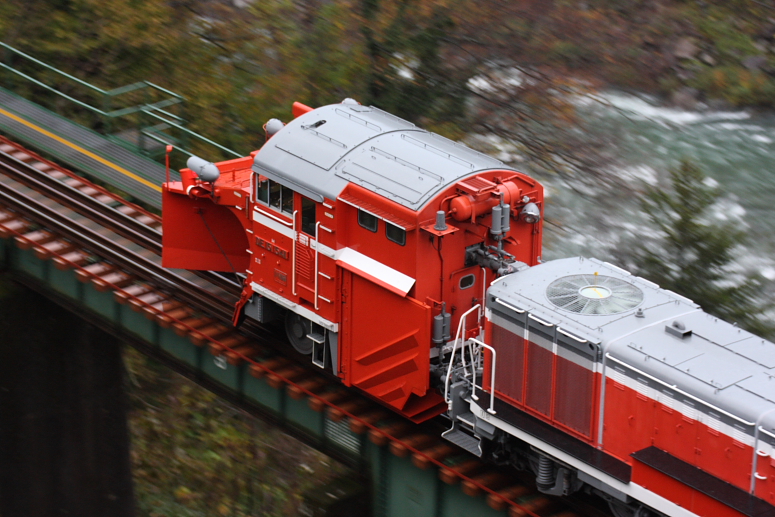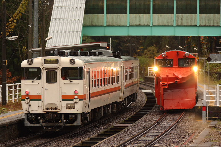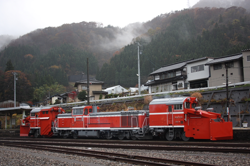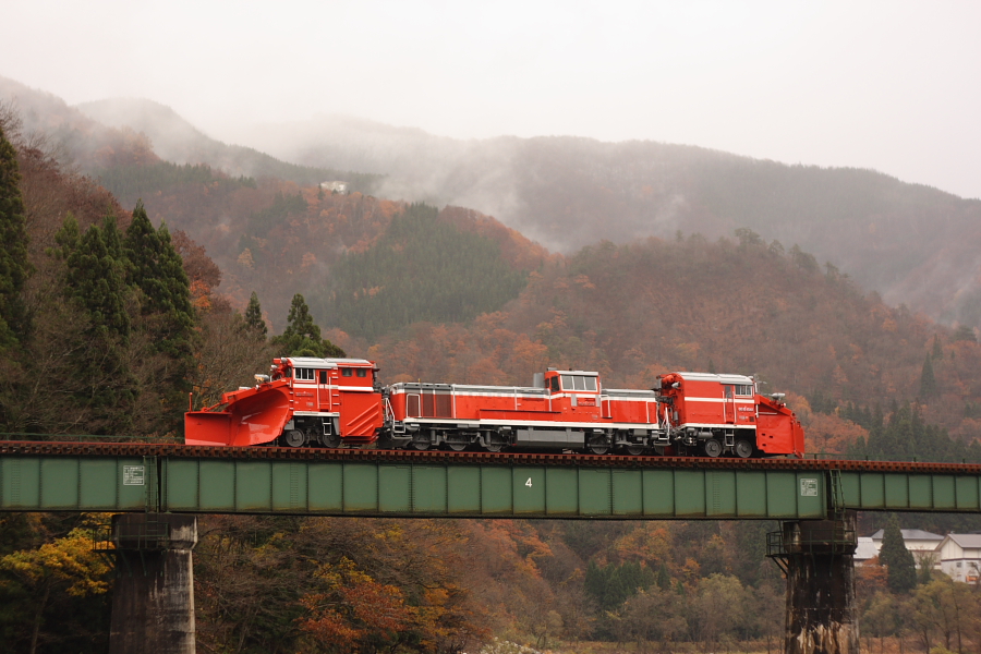 【高山本線(海)】DE15-1541試運転【ラッセル】 18日高山本線(JR東海)にて、DE15-1541によるラッセル試運転が行われた。杉原~猪谷間では実際にウイングも広げ、紅葉の中のラッセルの珍しい組み合わせが見られた。@打保~杉原試9693と1830D@杉原ウイング広げ、試運転@杉原~猪谷紅葉@杉原~猪谷トンネル飛び出し@杉原~猪谷ひだ号とキハ120と@猪谷折り返しの試9694流し@杉原~猪谷今年はラッセル出動しそうな予感!!まだ今月はいくつかラッセル試運転あるので、がんばります。 [1回]PR