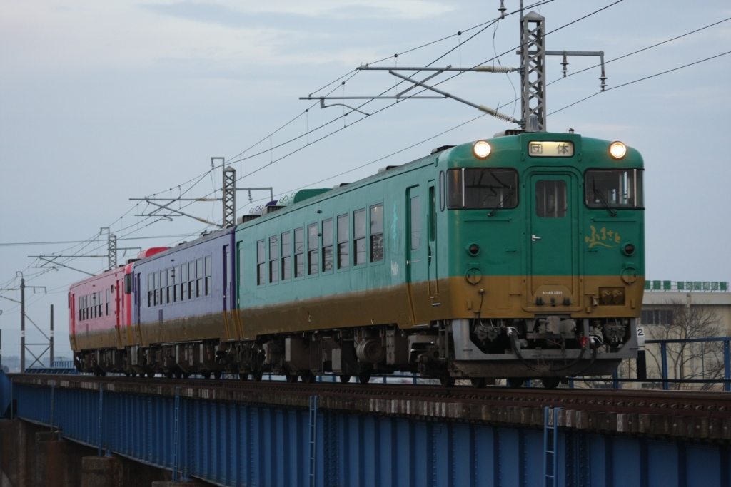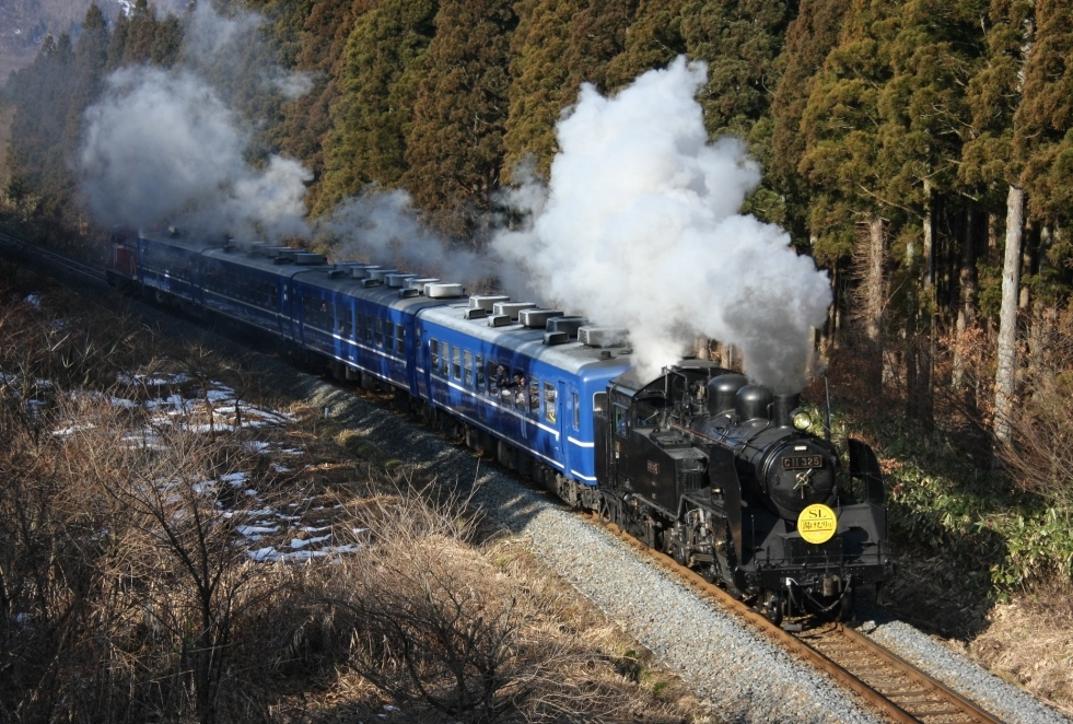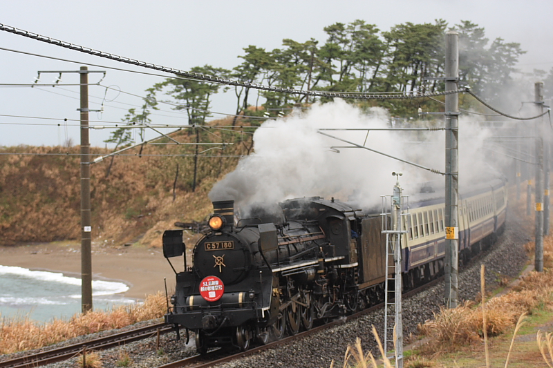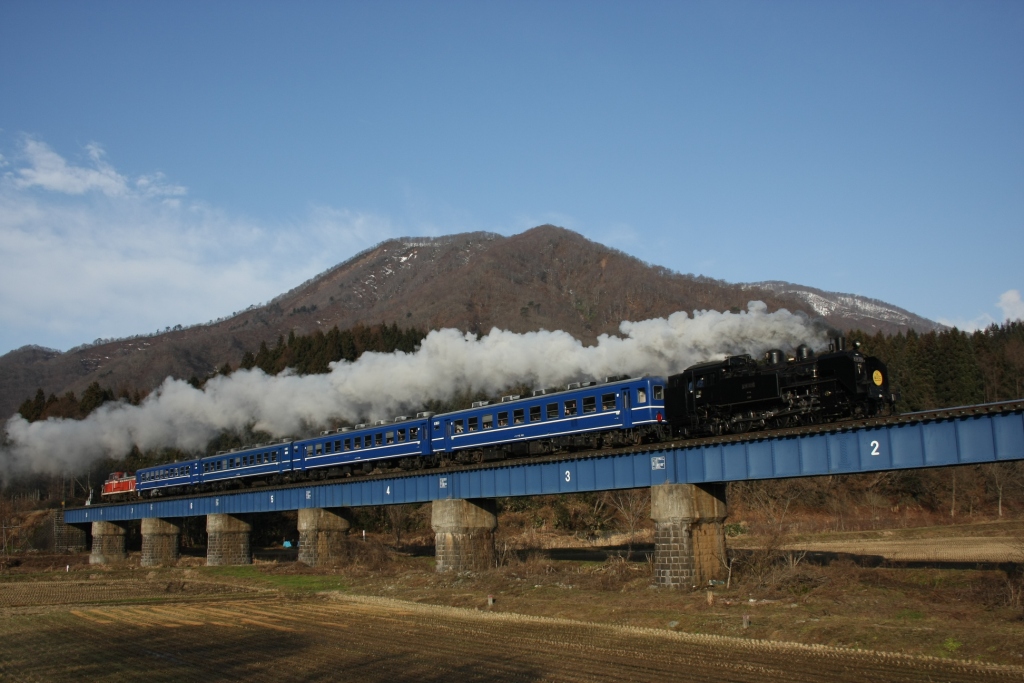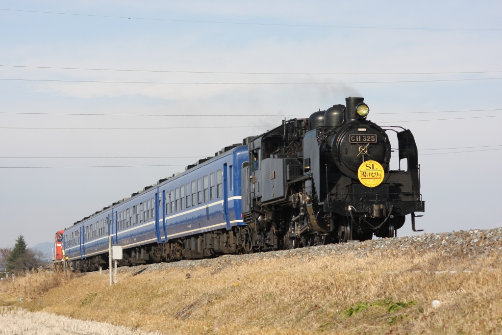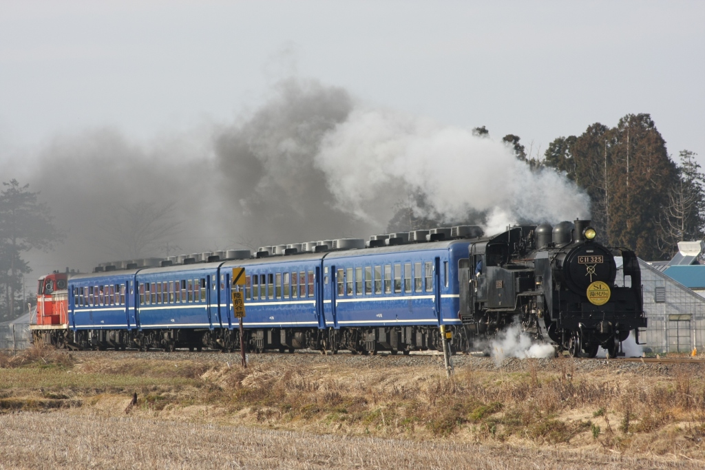 【陸羽東線】SL湯けむり号など【東北本線】 陸羽東線で「SL湯けむり号」を撮影しました。編成は前からC11-325(真岡鉄道車)+12系4両+DE10-1180(郡山車)追いかけて5回撮影!どれも激Vでした♪↓他にもいくつか撮影↓DE10-1120+コキ@松山町~鹿島台キハ58改「Kenji」使用の「光のページェント号」9536D@松山町~鹿島台キハ40・48改「ふるさと」使用の団体列車9540D@鹿島台~品井沼 [0回]