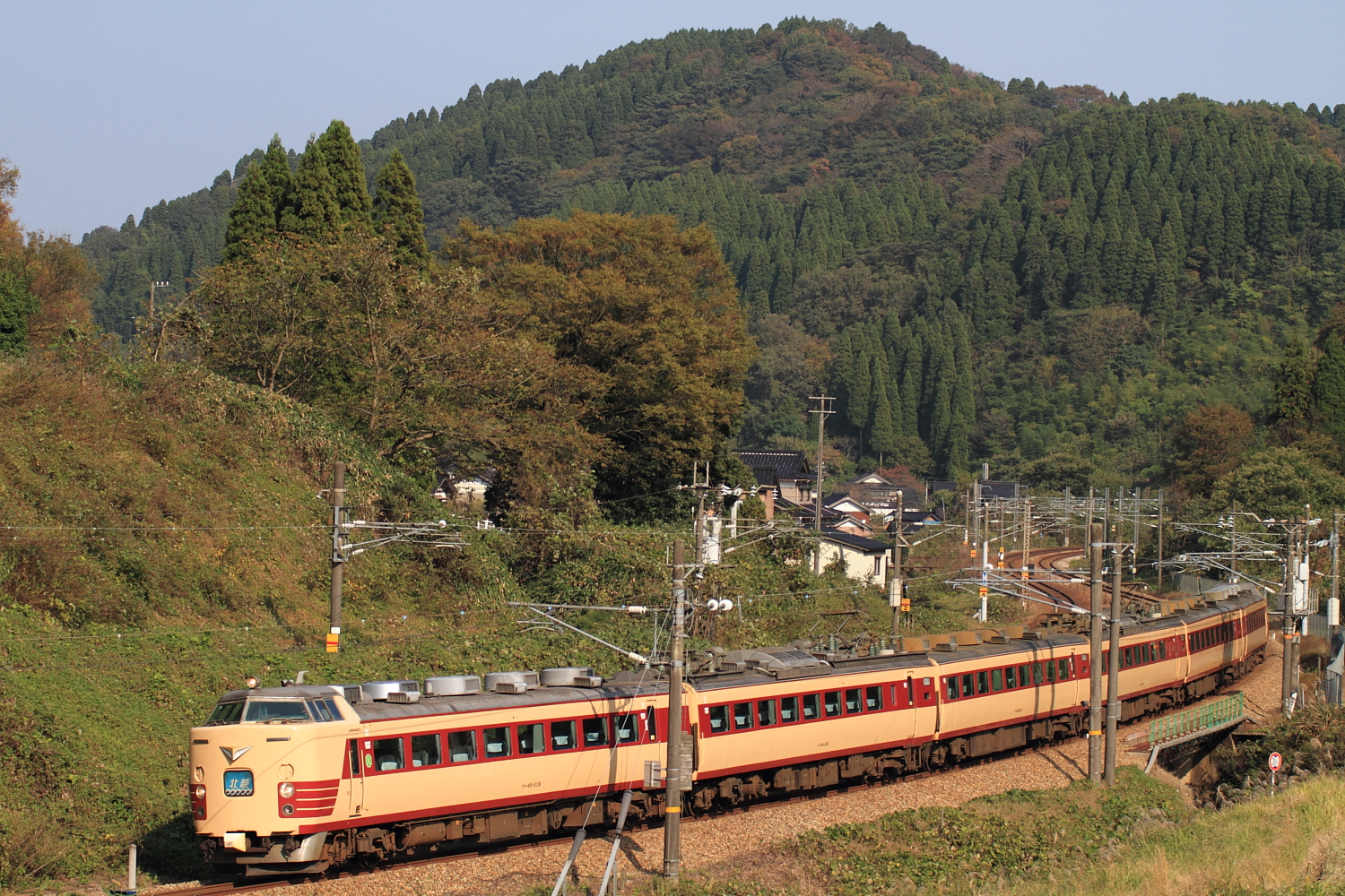 【北陸本線】のどかな場所で、NO.DO.KA撮影3【NO.DO.KA】 H25.11.2NO.DO.KAが再び北陸にやってきました。 9512M少し色付いた安楽寺を駆け上がります。と、言っても山を入れて撮影していませんので、北越号の国鉄色を山バックに。 1054M北越4号はT18編成でした。今年はNO.DO.KAが七尾線への入線はなさそうですね。 [0回]