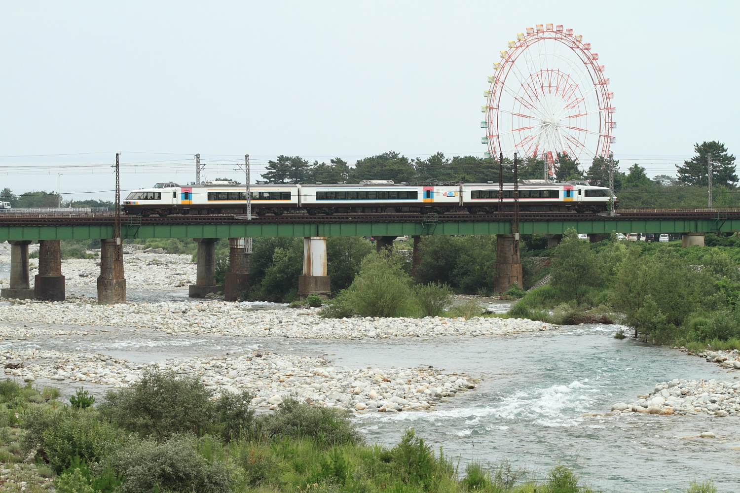 【北陸本線】NO.DO.KAと北越号撮影【485系】 H26.7.17ホキ3両撮影の後、485系を撮影。 1053M北越3号はK1編成でした。しかしあいにくの天気… 9512M485系改「NO.DO.KA」は観覧車をバックに。あいにくの天気なので、追っかける気にもなれず適当に記録。しかし、もう数回あるかないかでしょうね。この後は富山地方鉄道撮影に続きます。 [0回]