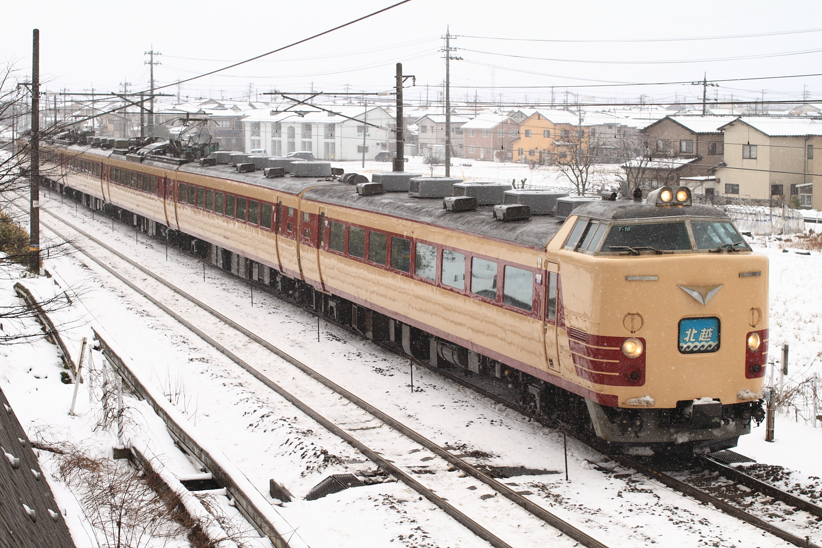 【北陸本線】北越5号T18編成や681系撮影【485系】 H27.2.10久々に北陸らしい雪が降ったので、津幡で軽く撮影。 2013M(W32)京都681系はしらさぎ塗装へ変更されつつあり、この塗装も間もなく見納めに。 3007M七尾線直通の「はくたか」号もあと1ヶ月、スノラビ編成の入線は数回程度でしょう、、 1055M(T18)北越号も結局最後までT18編成が活躍中です。残り1ヶ月と少し、記録できる時に記録を。 [0回]
