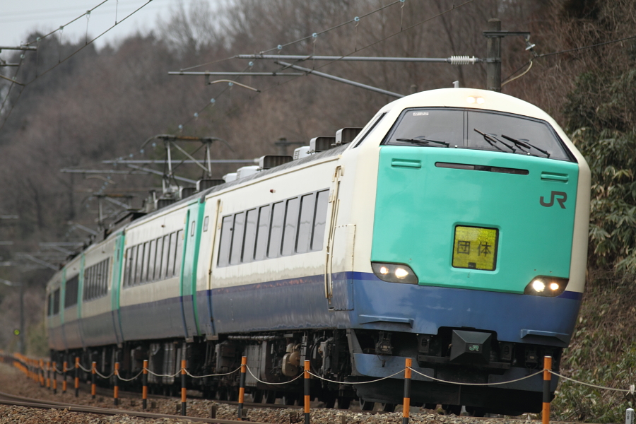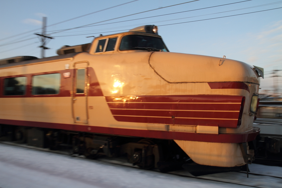 【北陸本線】はくたか16号代走【489系】 19日先日の事故で、681系パンタ故障の代走として「はくたか13~16号」で489系が使用されました。寝坊しまして、13号は…泣気を取り直して、16号を……1016M@石動~倶利伽羅ISO1600、RAWで補正してコレですよ。ヒドイ。大失敗。ラッセル撮った時みたいにISO4000くらい使ってしまえばよかったかな。悔しかったので、金沢総合車両所へ。HMはずされた後でした。。。。あああ。。 [0回]