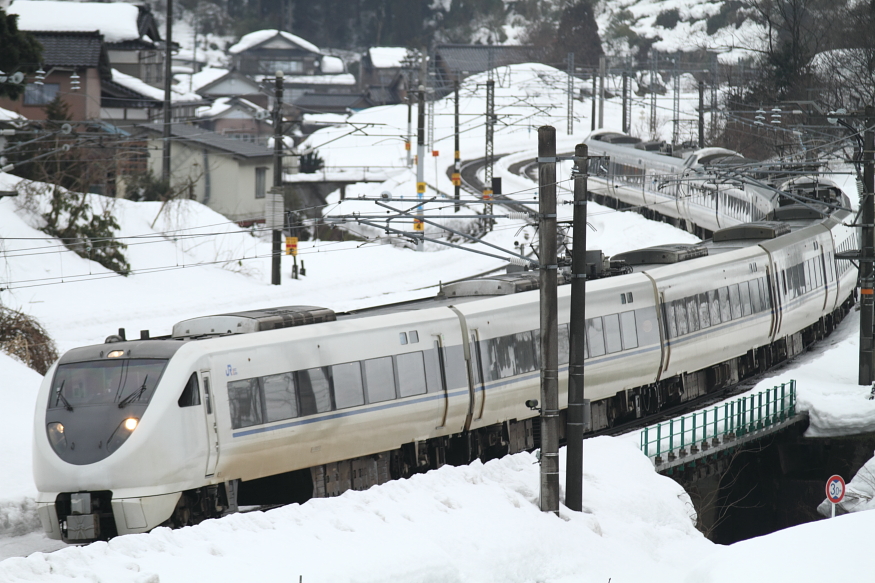 【北陸本線】はくたか12号代走【489系】 12日所定の681系に車輛不具合が生じたため、489系が代走しました!腰の高さまである雪の中から撮影。4034Mかなり減ってきた、6+3+3のサンダーバード!よく考えたら、富山行きは全て9両固定4000番台になるわけだから…1012Mおなじみ、ボンたかです。489系のために大阪からとんぼ返りしました。さて、北陸地方は1ヵ月に大きく変化しますね。できる限り、記録したいと思っています。 [0回]