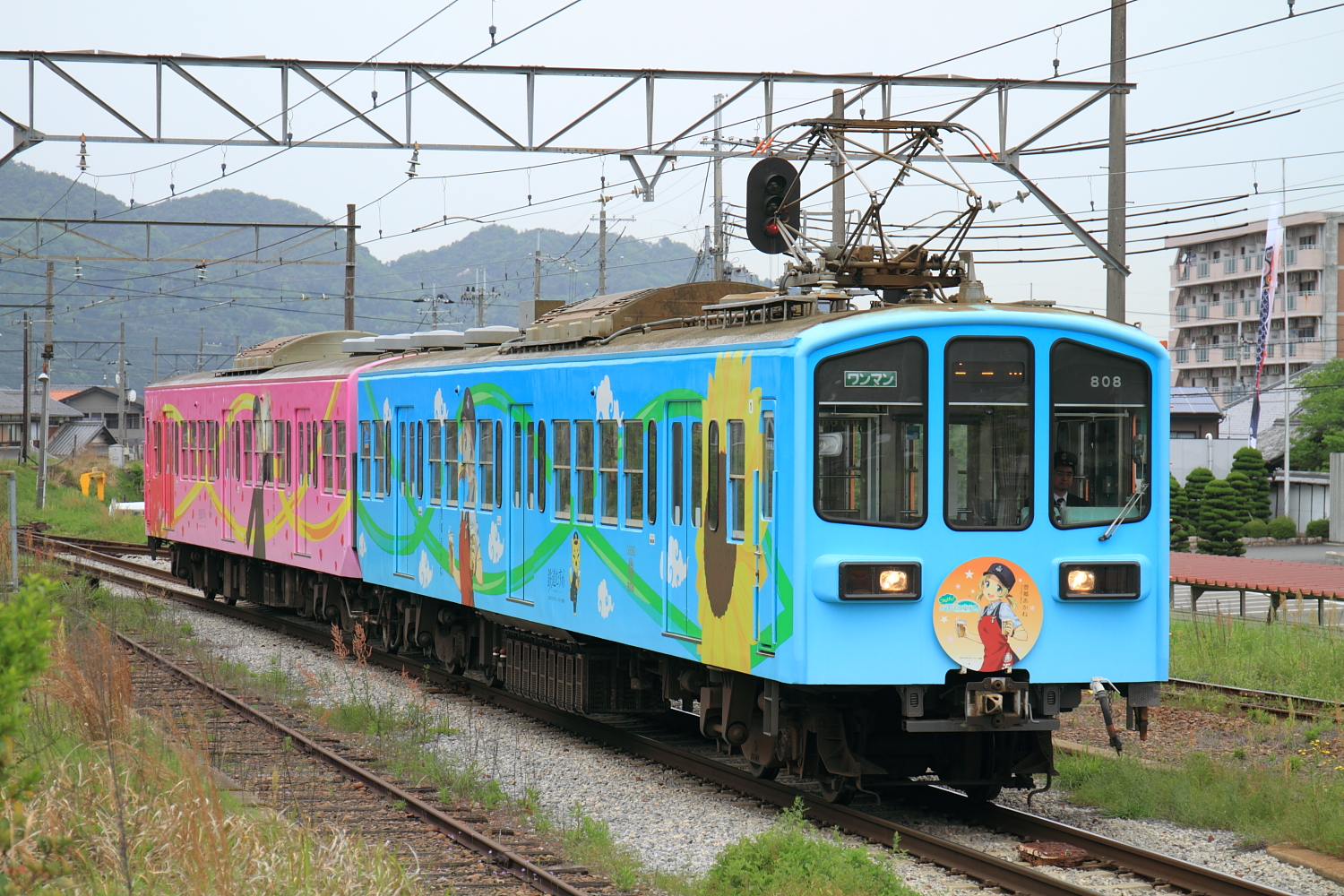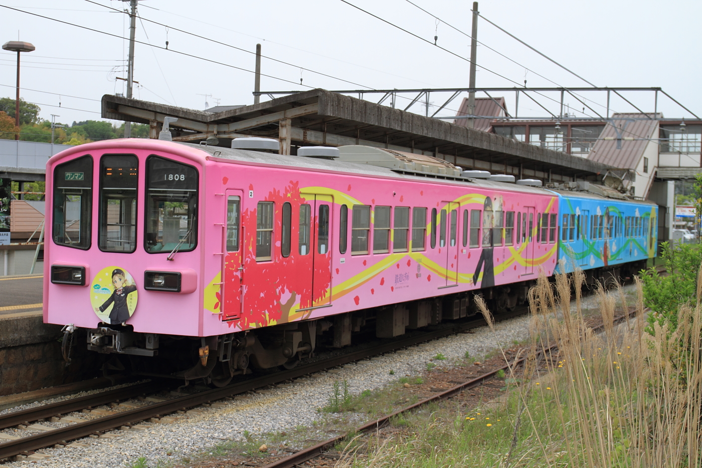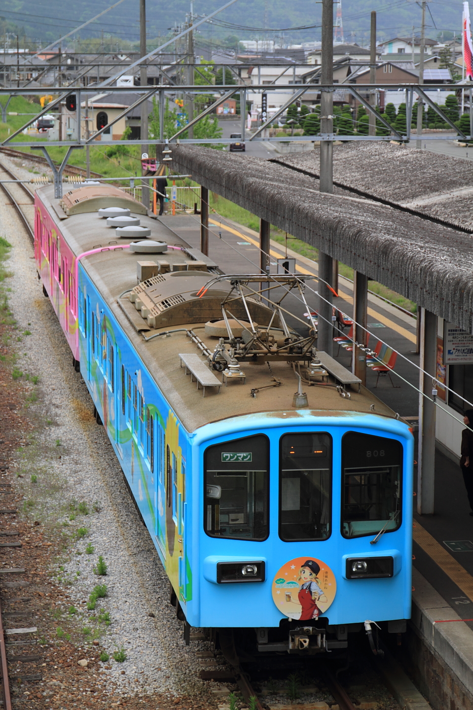 【近江鉄道】豊郷あかねラッピング電車【800系】 H29.5.9ぶらり近江鉄道に乗車。近江八幡駅から元西武401系に乗車し、八日市からは元西武101系に乗り継ぎ。貴生川駅から信楽高原鉄道往復乗車で帰って来ると、到着列車がありそうだったので構えると、フルラッピング車でした。 @貴生川近江鉄道800系808編成(808+1808)がフルラッピングされています。行こう行こうと思いつつも、いつも乗車だけになってしまう近江鉄道。次こそは撮影メインで訪れたいものです。 [0回]
