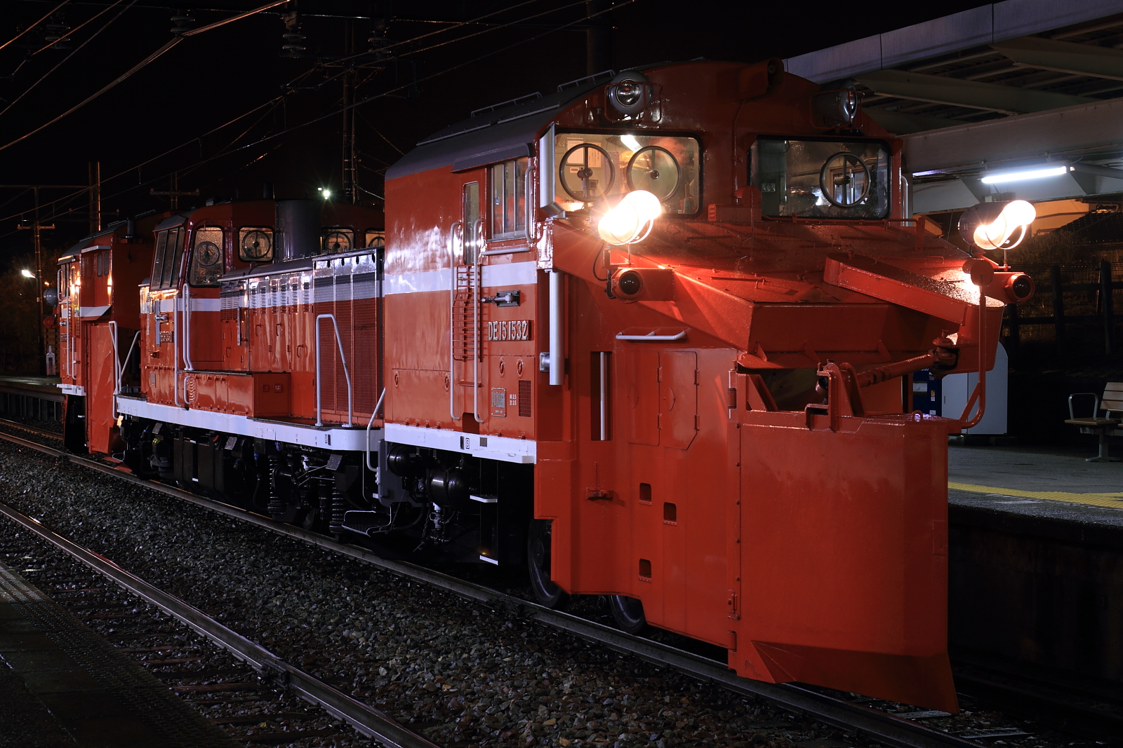 【七尾線】DE15 1532ラッセル試運転【DE15ラッセル】 H28.11.25今年もやってきました、ラッセル試運転。七尾線はついにDD15からDE15ラッセルになり、今年度は敦賀のDE15 1532号機が担当となりそうです。 試9881@宇野気DE15 1532ラッセル。七尾線でDE15が走るのは、おそらく初めてかと。 @免田北陸地方に唯一残るDD15ラッセルは北陸本線での活躍で、最後になりそうです。今冬も北陸地方の雪レを徹底的に。 [0回]