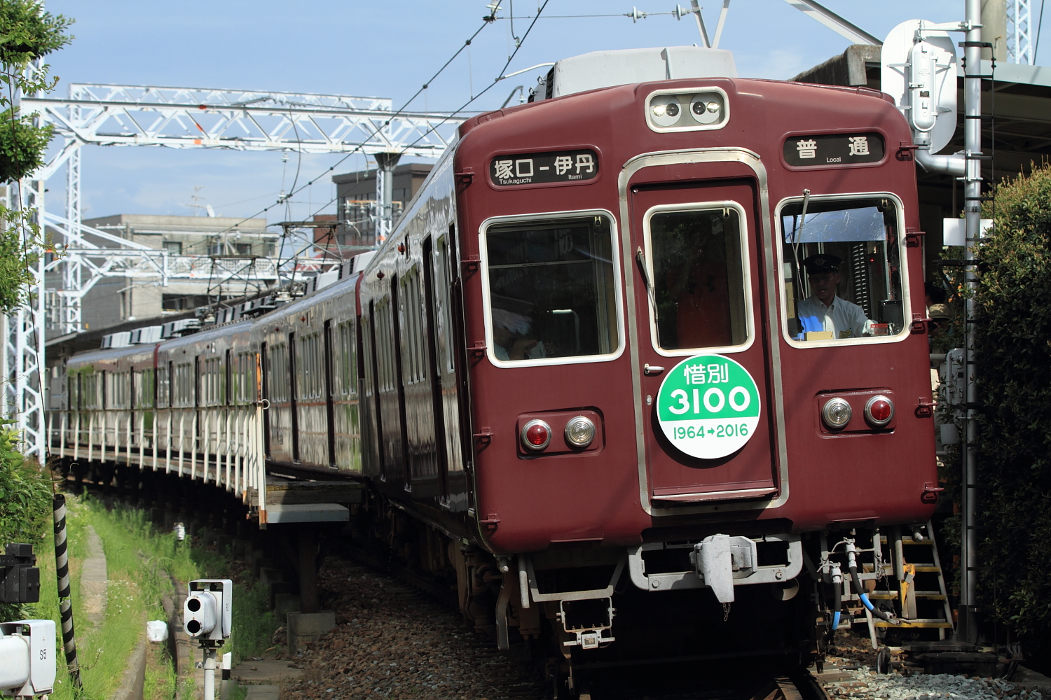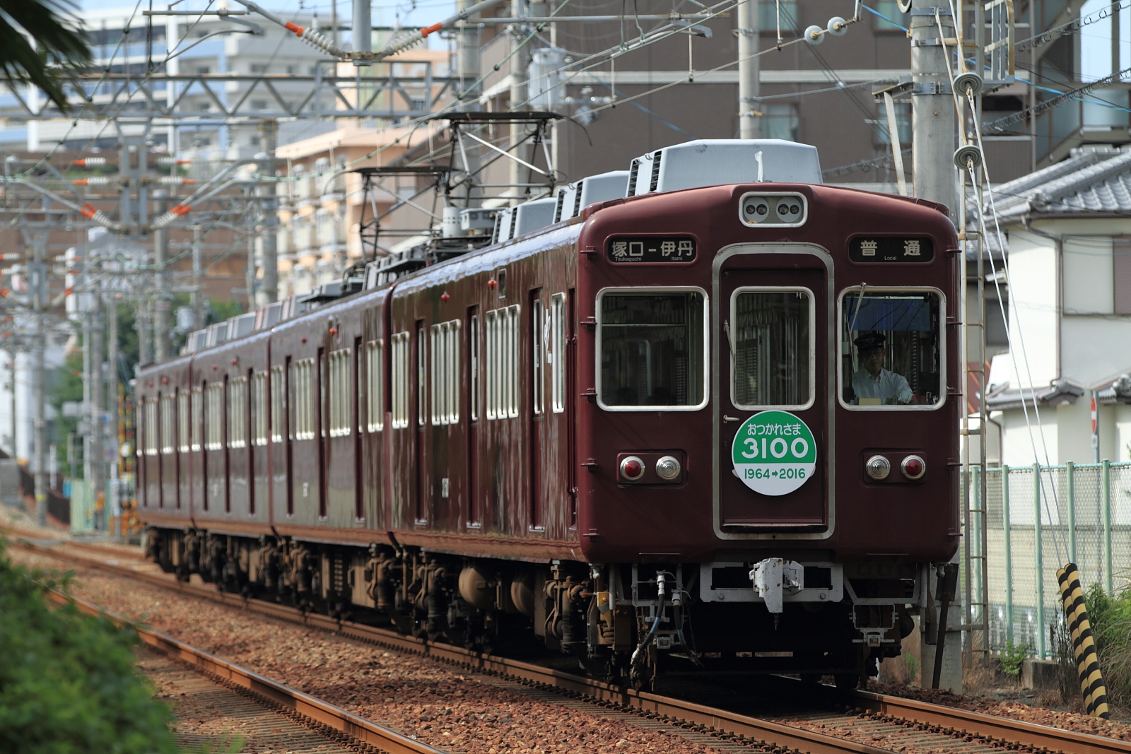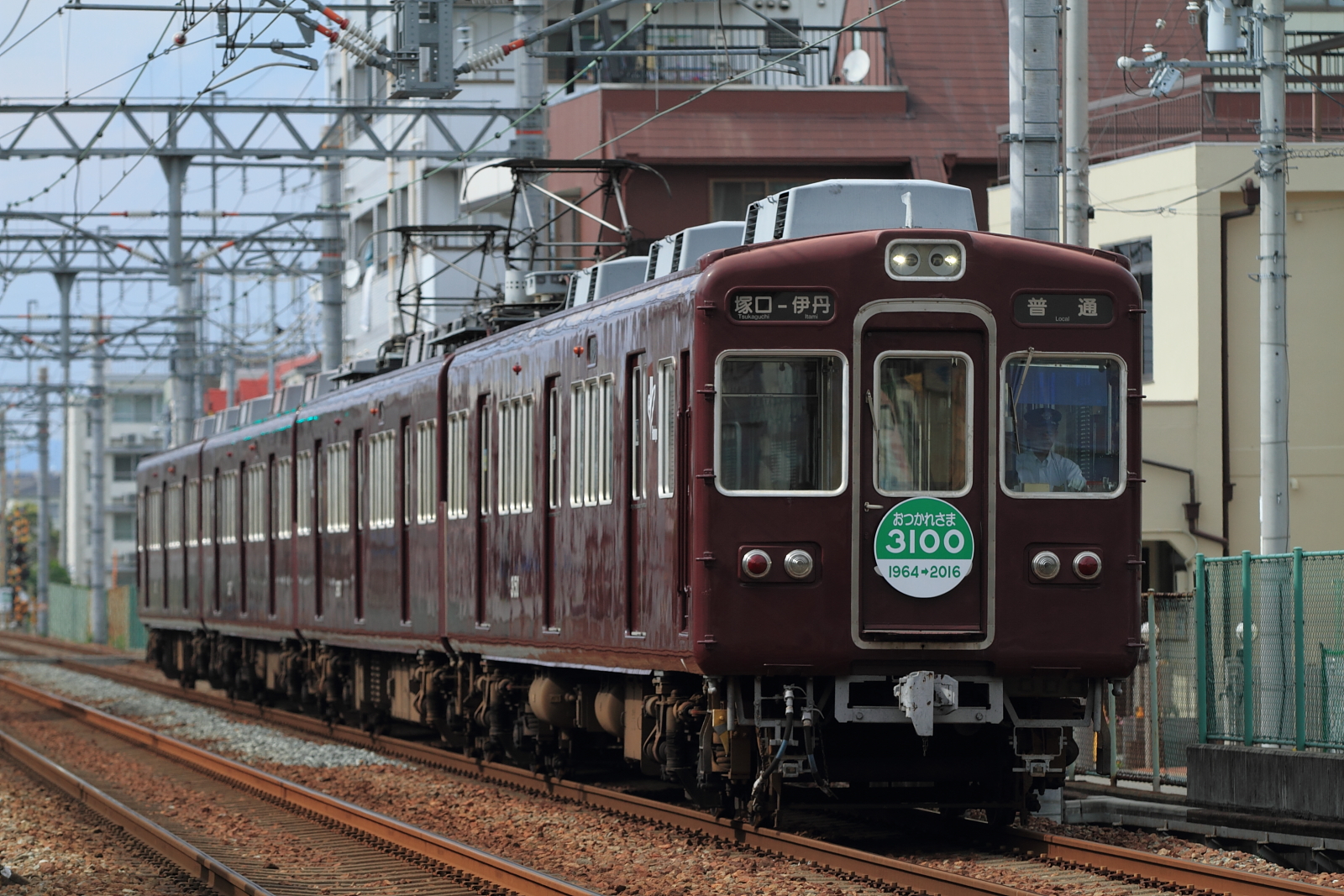 【阪急電鉄】おつかれさま・惜別HM【3100系】 H28.7.4阪急伊丹線で活躍する3100系3150Fにヘッドマークが取り付けられています。 前後で異なるHMで、塚口〜伊丹間を行ったり来たりと撮影しやすいのですが、単調… 両側1枚ずつの記録にしようと思っていたら、前照灯が消灯、、、 もう1往復撮影。 阪急電車は普段から様々なHMが付くことが多く、本線でも色々付いてました。 阪急はどの車両も綺麗ですね。 [1回]