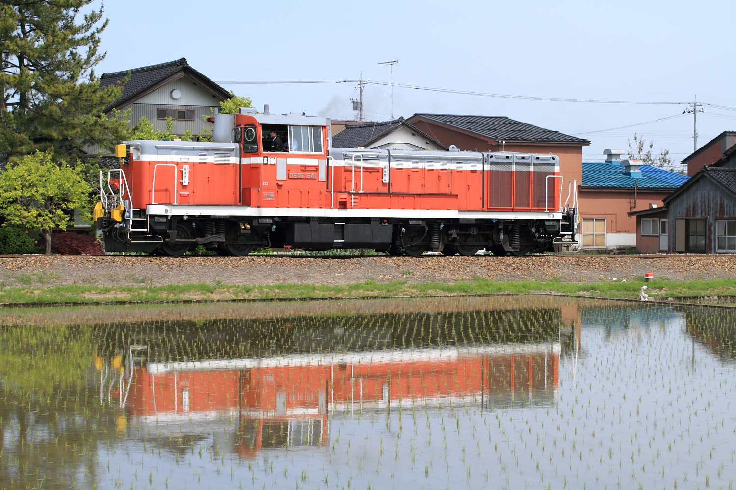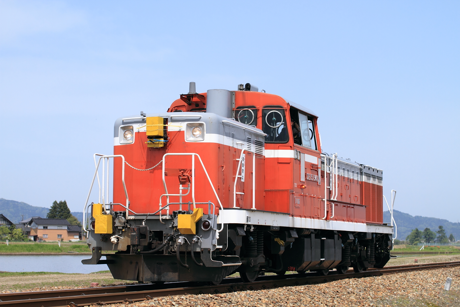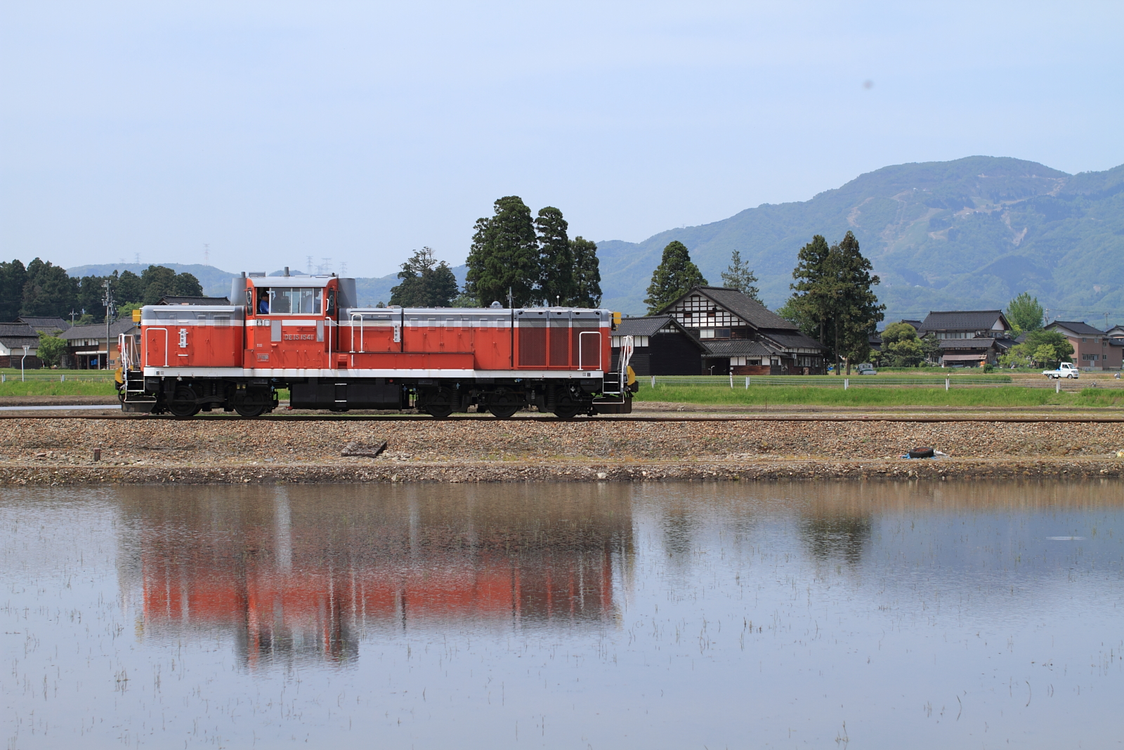 【城端線】散水試験列車運転【DE15】 H28.5.2普段はラッセル車として活躍している「DE15 1541」に散水装備が施工され、試運転を行いました。 @東石黒〜福光 @越中山田〜城端途中、速度を落として散水を行っていましたが、残念ながら記録することはできずただの単機運転にしか見えません。 @越中山田〜城端復路は散居村とスキー場バックに側面から記録。なんと、南砺、、、小さい虫?が画面右上に。他のカットを見ると左に動いていたようで、すべてのカットに登場していました。。。 @東石黒〜福光最後は光線も悪く、適当に望遠で。毎冬活躍しているDE15 1541号機、今後は夏にも期待です。 [0回]