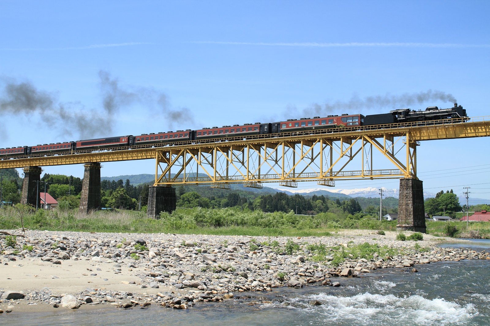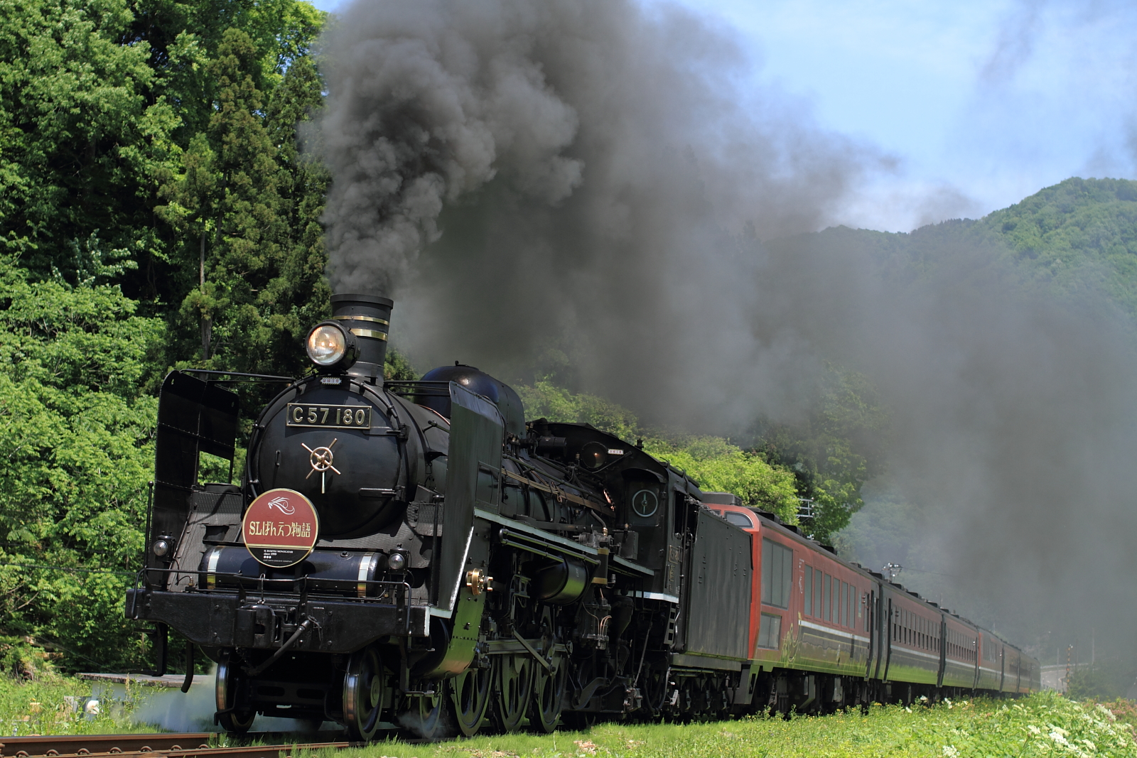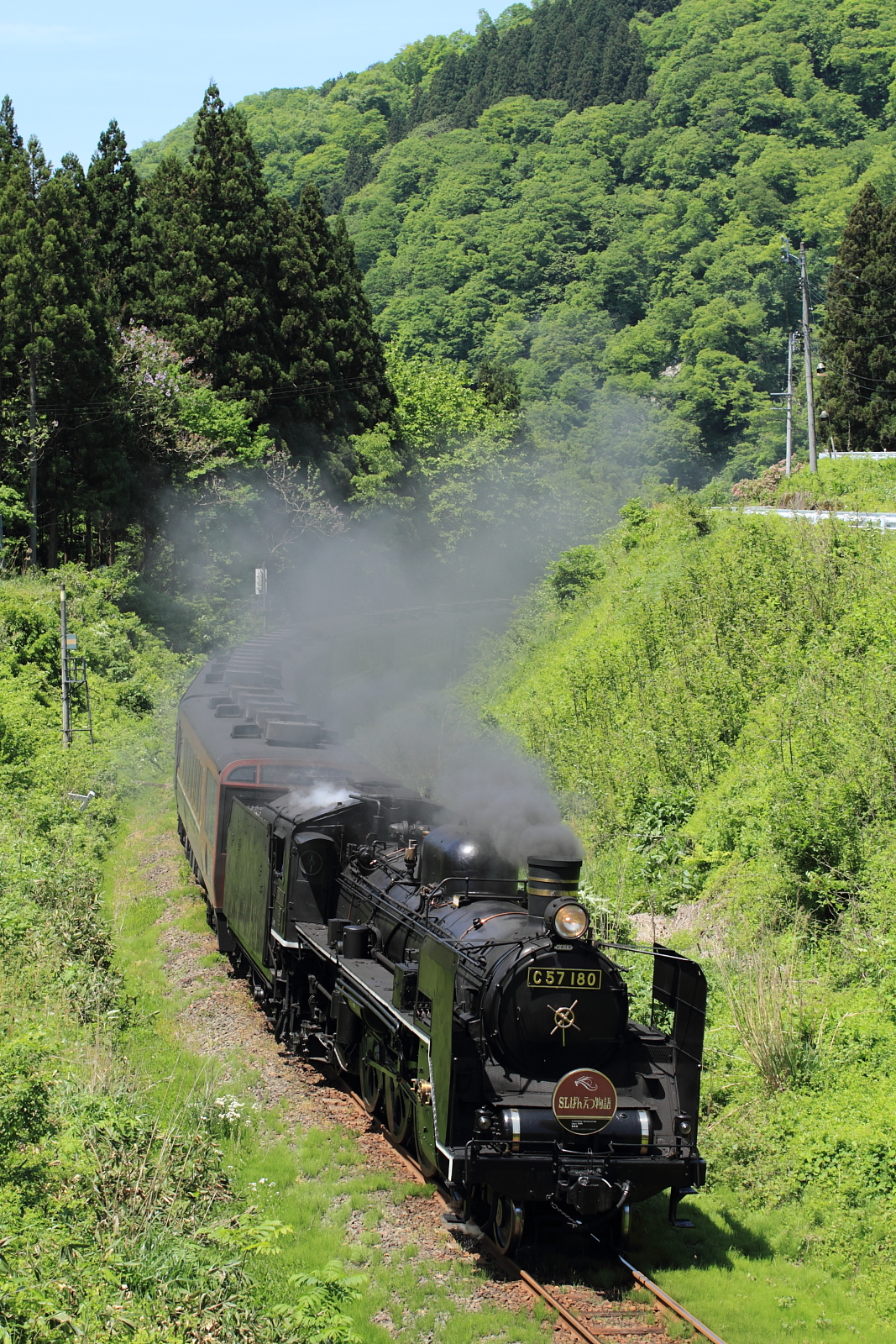 【磐越西線】SLばんえつ物語号撮影2【C57】 H28.5.15新緑のSLを撮影に、磐越西線へ。前回は急遽のDE10代走だったので、SLばんえつ物語号としての撮影は4年ぶりです。ある程度撮影地を決め、良い天気のなか撮影。 8226レ@三川〜五十島煙を出しながら加速してゆくC57 180号機。 @徳沢〜豊実国道で先回りして、少し上から。 @喜多方〜山都またも国道で先回りして、定番の鉄橋で往路は終了。喜多方ラーメンを食べ、街を散策し復路を待ちます。 8233レ@喜多方〜山都喜多方を出発し、上り坂を上がるC57を記録。あまり煙が出ているSLを撮影することはできなかったが、ロケーションの良い磐越西線は魅力がいっぱいですね。この後は国道で米坂へ抜け、かみのやま温泉で1泊し翌日帰宅でした。また良い天気の日にゆっくり訪れたいものです。 [0回]
