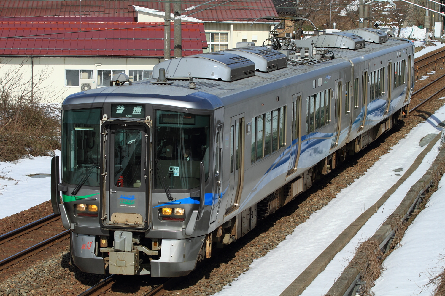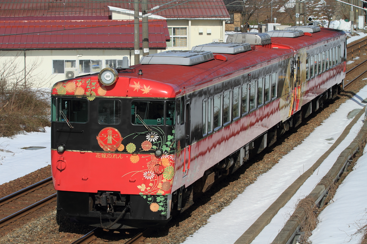 【IRいしかわ鉄道】特急「花嫁のれん」撮影12【キハ48改】 H30.2.2久々に少し晴れたので、花嫁のれん号を撮影。 8012D@森本〜津幡雪の反射で側面が光ってしまいました、、 せっかくなので、521系普通列車も。あいの風編成でした。 [0回]