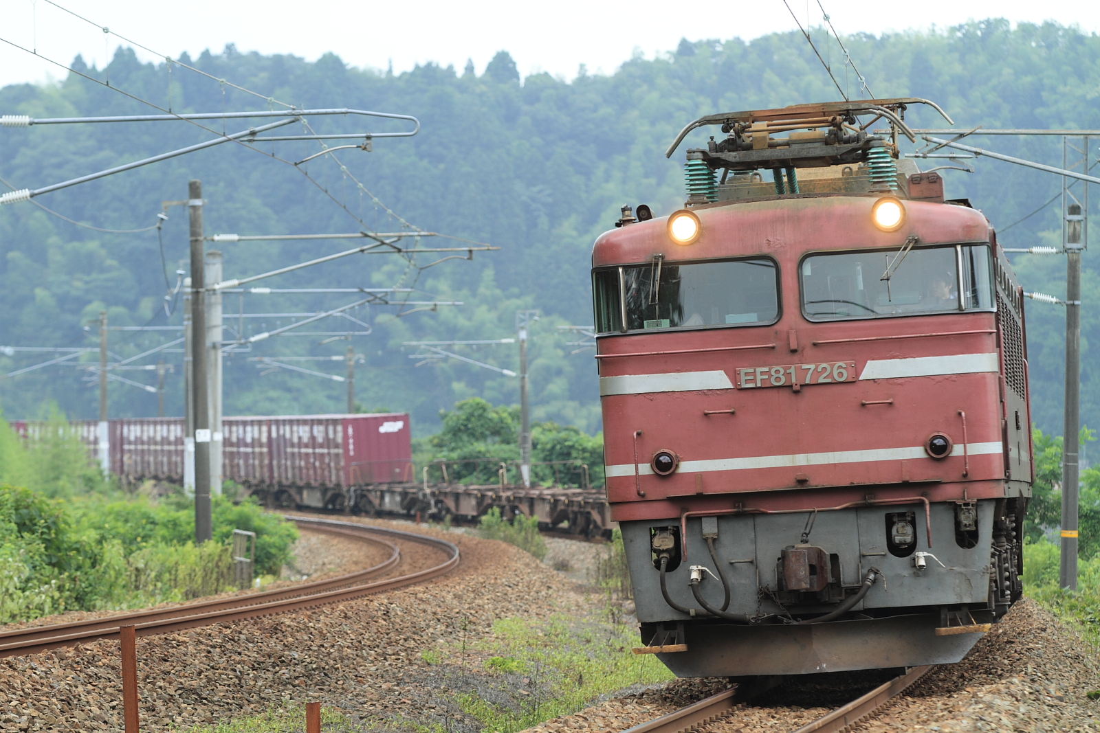 【IRいしかわ/あいの風とやま鉄道】1083レ/4060レ撮影【EF81/EF510】 H27.7.28微妙な天気のなか、貨物列車撮影。 1083レ@津幡〜倶利伽羅EF81 726号機牽引でした。この辺りでは数少ない、日中のEF81運用です。 4060レ@西高岡〜高岡EF510 502号機牽引でした。こちらは…汚れが…。日本海縦貫は厳しい環境なのでしょう。最近、貨物列車のコンテナや荷物を見るのも面白いと感じてきました。 [0回]