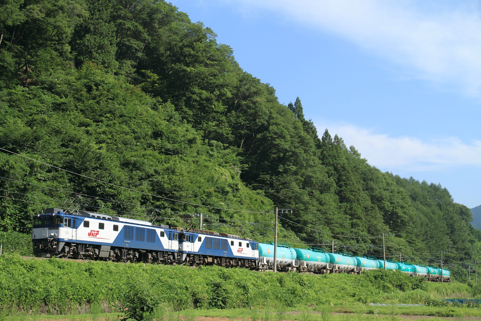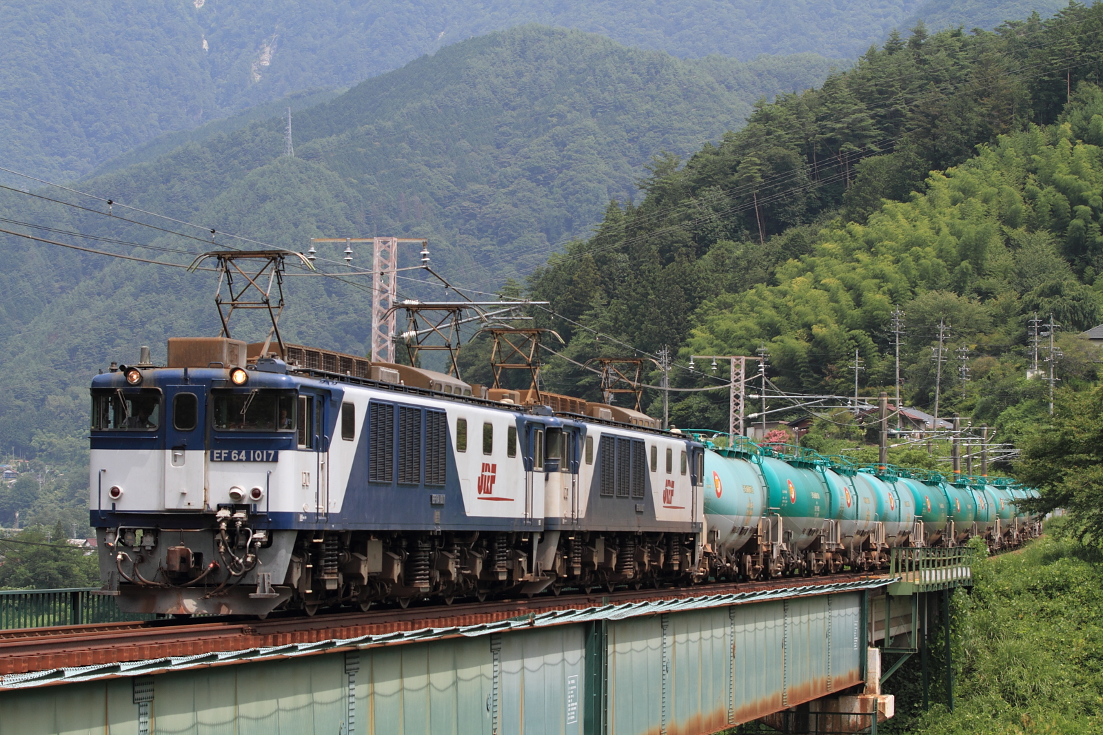 【中央本(西)線】ロクヨン重連貨物撮影11【EF64】 H27.8.7夏の中央西線貨物列車を撮影。いつものルート、高山から国道361号で御嶽山を横目に木曽路へ。 そしてお気に入りのロクヨン撮影、まずは池でイモリを探しつつ3088レを。 3088レ@藪原〜宮ノ越EF64 1015号機+EF64 1026号機+タキ9両9両と短い編成でした。そしてイモリを発見し、捕獲。ちかくのコメリで瓶を購入し、須原宿で湧き水を入れてのんびり。 3084レ@須原〜大桑 3084レ@田立〜坂下EF64 1017号機+EF64 1027号機+タキお決まりの場所での記録。この後、温泉やらまったり予定でしたが何となく撮影地を探しながら南下。 81レ@釜戸〜瑞浪EF64 1023号機+EF64 1013号機+コキ 5875レEF64 1026号機+EF64 1015号機+タキ少し逆光気味ですが、なかなか良いところを発見。雷雲が接近していたので、ここで撤収。多治見〜美濃太田〜美濃白鳥〜九頭竜湖と経由し、白峰温泉でほっこりして帰宅。一般道優先で走ったのに、途中寄ったのがすき家とコンビニであったのが、今回の反省点。。。 [0回]