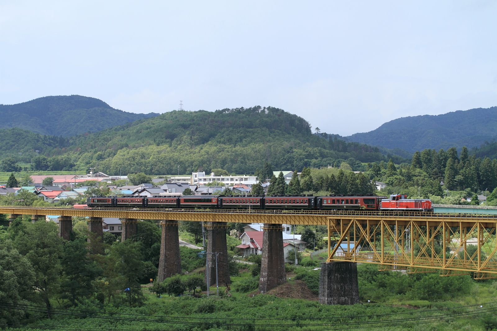 【磐越西線】SLばんえつ物語号撮影【DE10 1680代走】 H27.8.15猪苗代へ温泉旅行のついでに、SLばんえつ物語号撮影。 8226レ@豊実〜日出谷どうやら14日にC57機関車故障で、15日はDE10の代走だったようです。煙を期待してのアングルで、まさかのDE10、、、 8226レ@喜多方〜山都気を取りなおして鉄橋へ。通過時のみ雲がかかるとは…。この後、喜多方でラーメンをいただき、485系撮影へと続きます。 [0回]