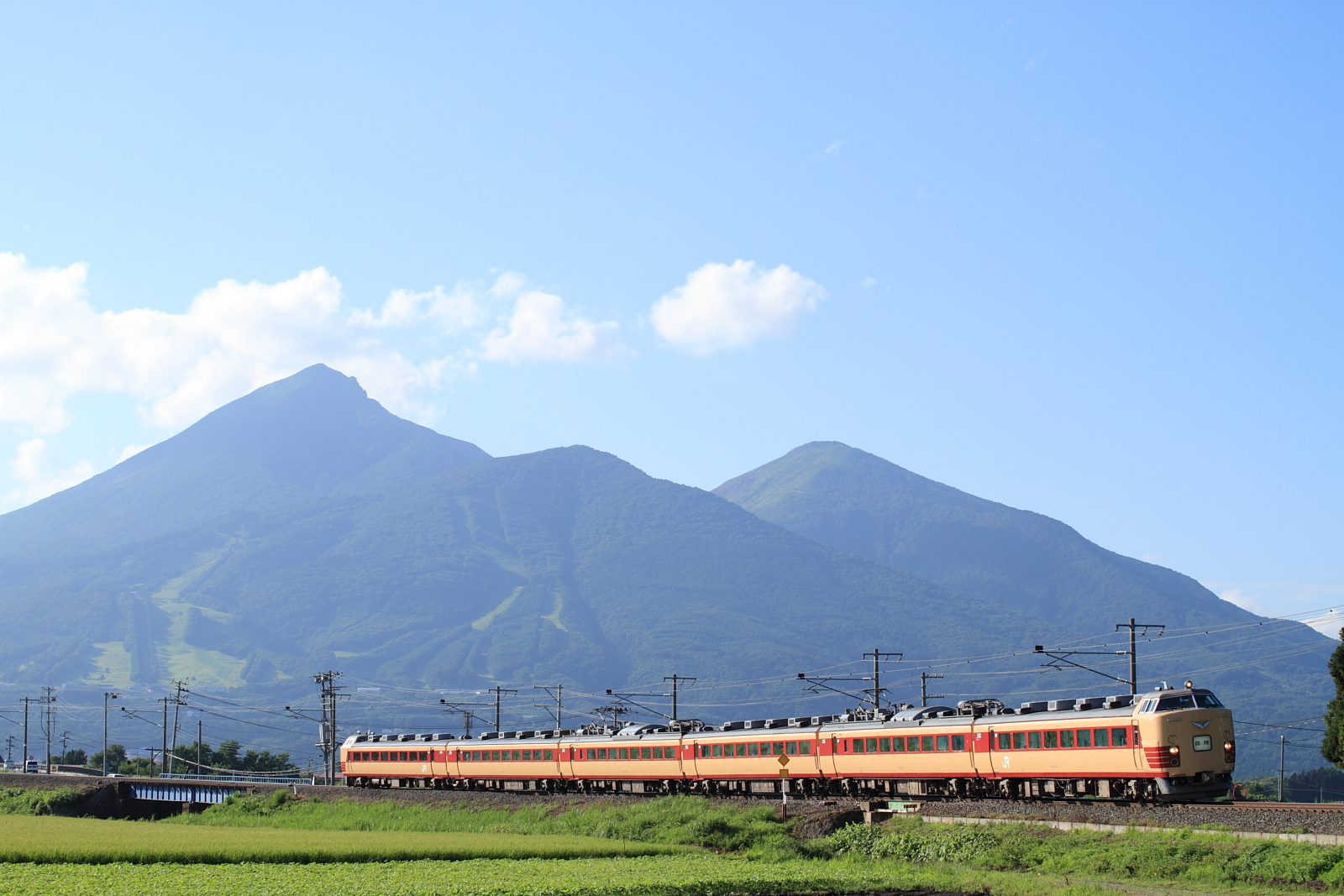 【磐越西線】快速会津ふるさと夏休み号撮影 【485系】 H27.8.15DE10代走のばんえつ物語号撮影のあと、川桁へ。 9234M@川桁〜猪苗代仙台のA1A2編成での運転でした。ここは光線イマイチで、磐梯山も…。ヘッドマークも「あいづ」だと思っていたのですが、思い込みでして「臨時」でした。しかし、485系国鉄色は良いですね。 [0回]