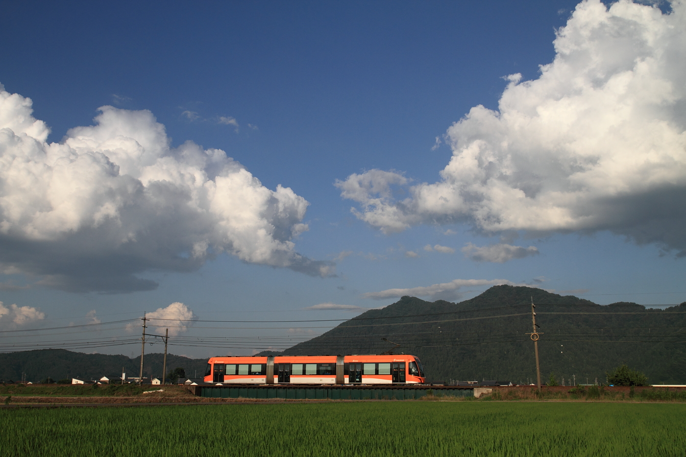【福井鉄道】田んぼと福井鉄道【200形】 H27.7.14敦賀での撮影のあと、国道8号線で帰宅中に夕暮れの福井鉄道を撮影。 @家久〜サンドーム西 @鳥羽中〜三十八社 @三十八社〜泰澄の里200形も2種類記録できました。 [2回]