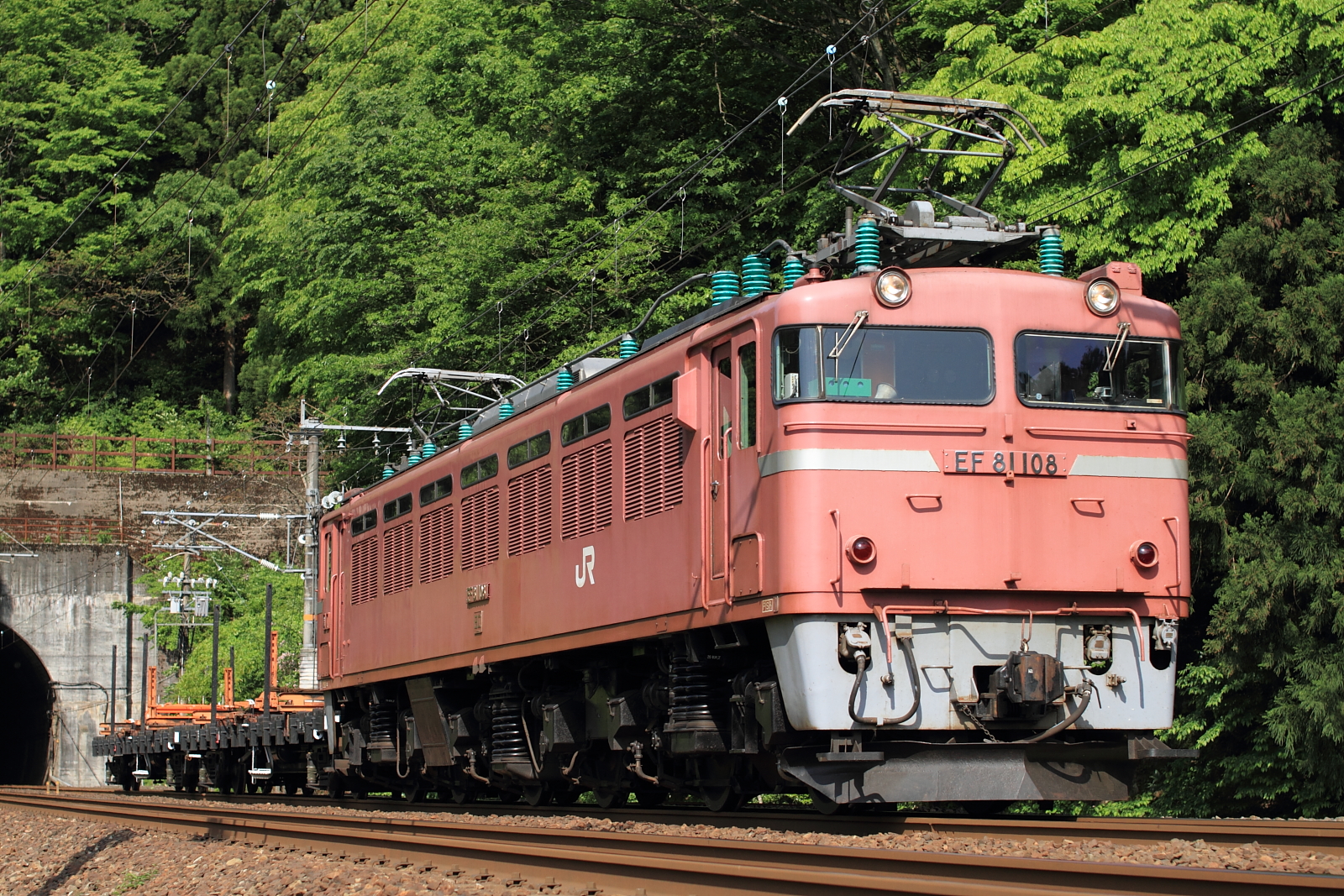 【北陸本線】工9570レ (EF81 108号機牽引)空チキ2B撮影【EF81】 H27.5.10松任からの空チキ返却を撮影。 工9570レ@南条〜王子保EF81 108号機牽引でした。今庄の停車で先回りし、トンネル飛び出し。 @今庄〜南今庄この後、旧北陸本線を巡り敦賀へと戻り、敦賀トンネル温泉でほっこりして終了。やはり「撮影+温泉+美味しいもの」の3点セットは最高ですね。 [0回]