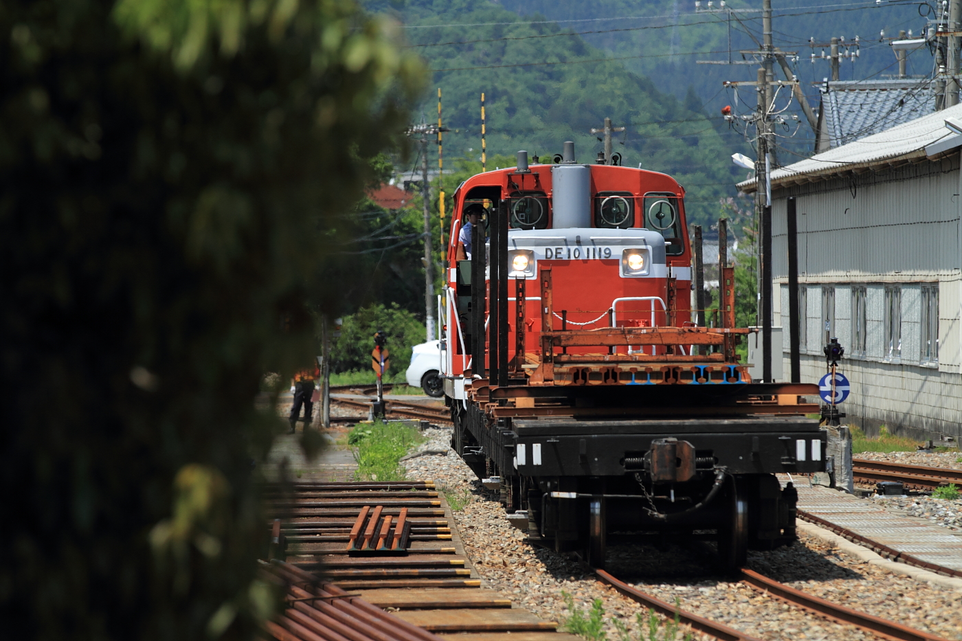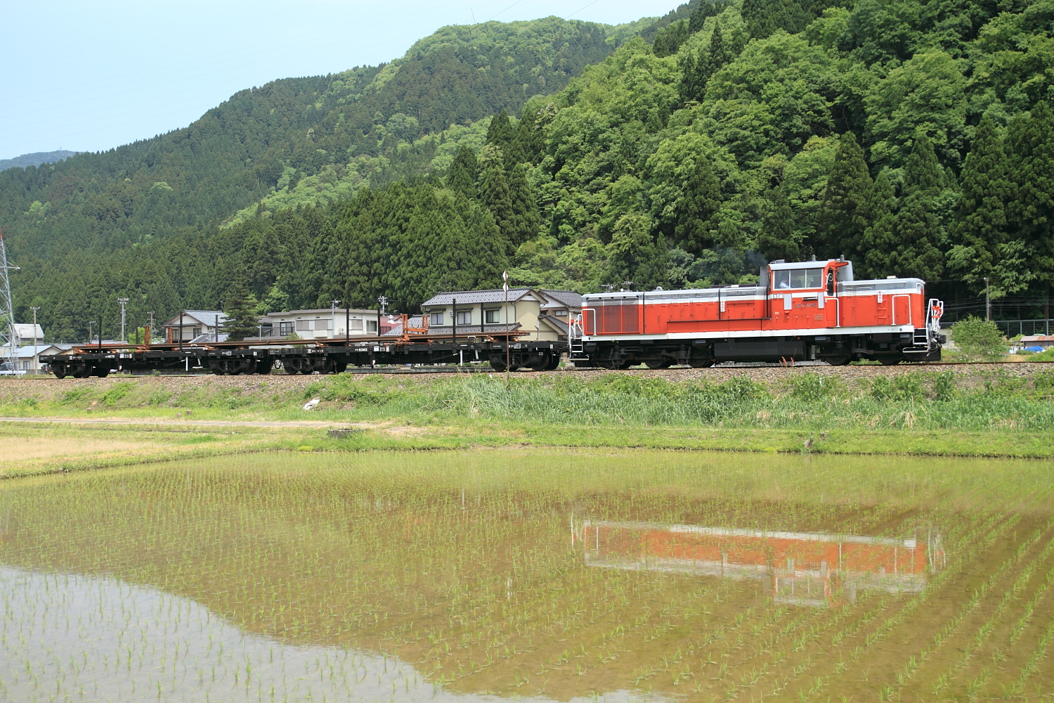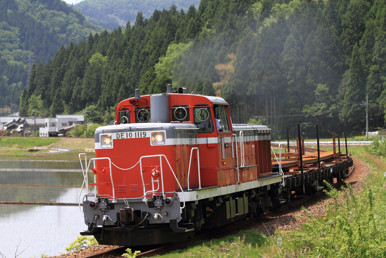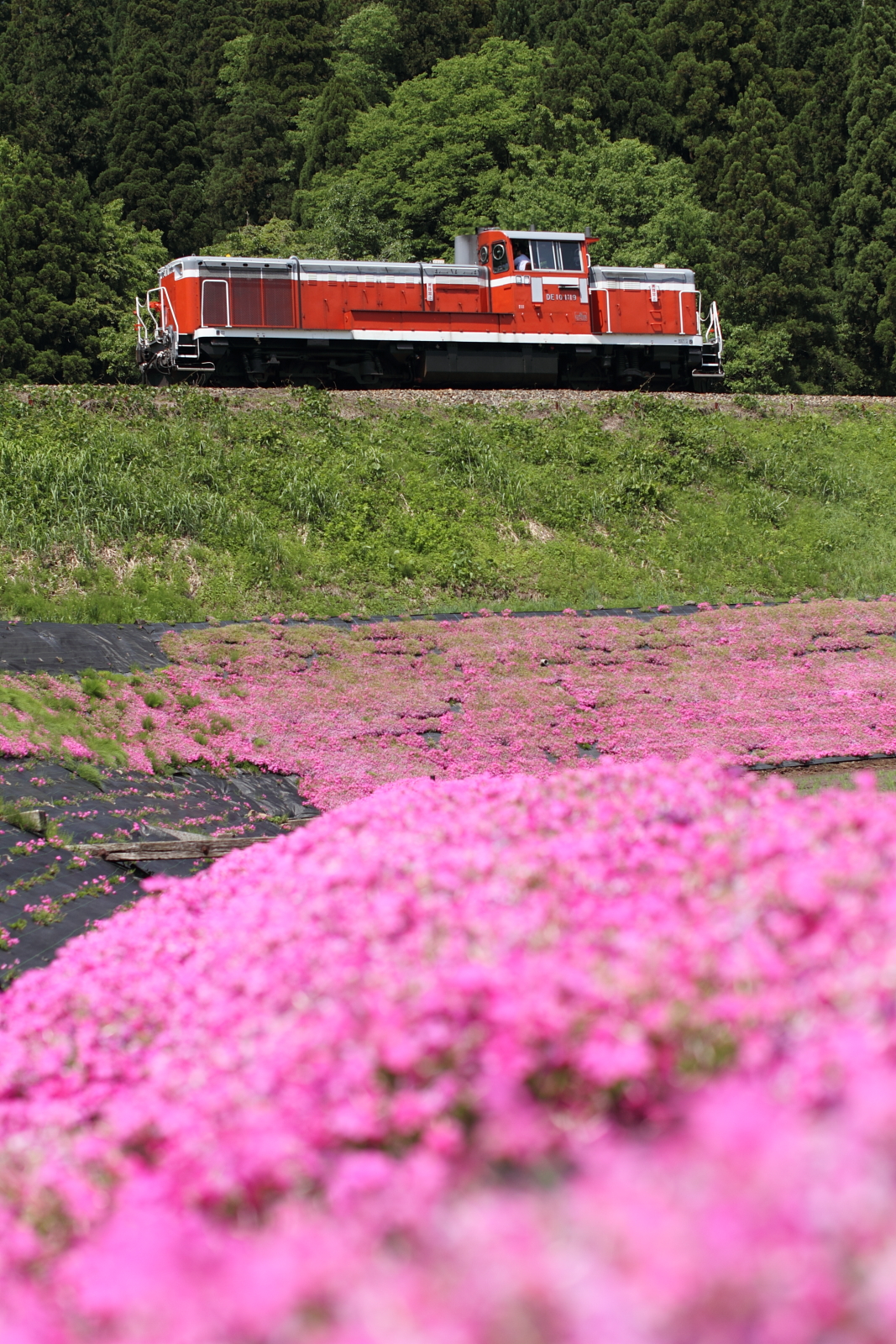 【越美北線】工9731(チキ2B)撮影 2015年【DE10】 H27.5.13越美北線にてチキ2両のレール運搬が南福井→越前大野間で運転されました。 工9731レ@一乗谷〜越前高田DE10 1119号機牽引でした。昨年同様の機関車でしたが、今年は少し早い時間に設定されました。 @小和清水〜美山 @計石〜牛ヶ原越前大野到着後、チキ車の入換を。 入換後、DE10は単機で回送。 単9732@計石〜牛ヶ原芝桜の土手をDE10が通過。昨年同様、レール積載の工臨の記録でしたが少し違った視点から記録ができました。撮影後、越前大野ではイトヨの里など観光。ゆっくり温泉入りながらの帰宅が理想でしたが、今回は時間の都合上すぐの帰宅となりました。工臨の季節はまだまだ続きます。 [0回]