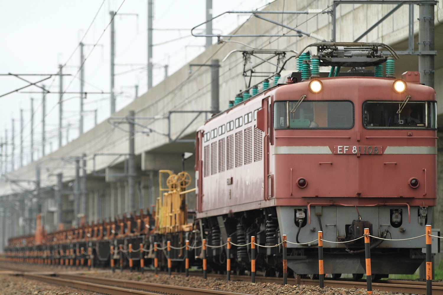 【北陸本線】工9588レ (EF81 108号機牽引)空ロングチキ撮影【EF81】 H27.5.16金沢からの空ロングチキを撮影。 工9588レ@松任〜野々市EF81 108号機牽引でした。空チキだし、天気も悪いし、適当に記録……と思いきや、ピン甘、、、、、 [0回]