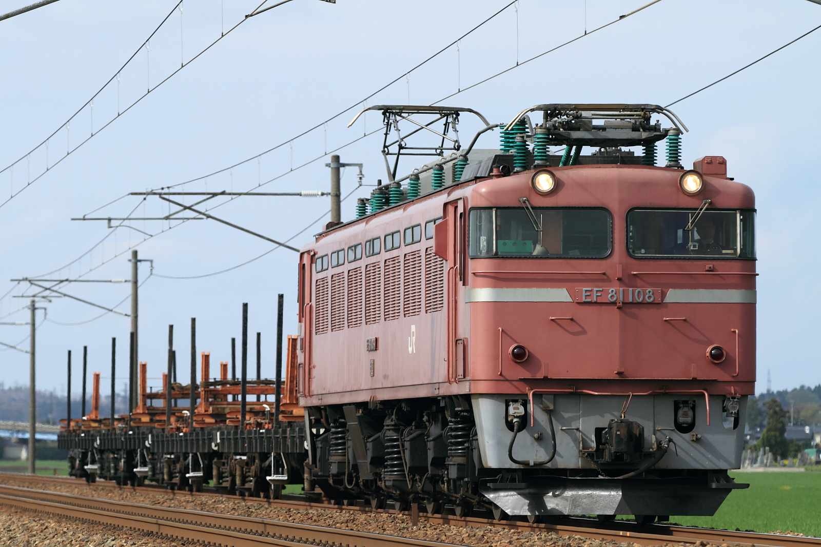 【北陸本線】工9572レ (EF81 108号機牽引)空チキ4B撮影【EF81】 H27.4.8今年度も春のチキが運転されています。 工9572レ@丸岡〜芦原温泉EF81 108号機牽引でした。空チキの返却です。列番も去年と同様ですが、牽引機が残り2機となってしまいました。。。お気に入りの108号機がまだ現役なのが本当に嬉しい。最後まで記録し続けよう。 [0回]