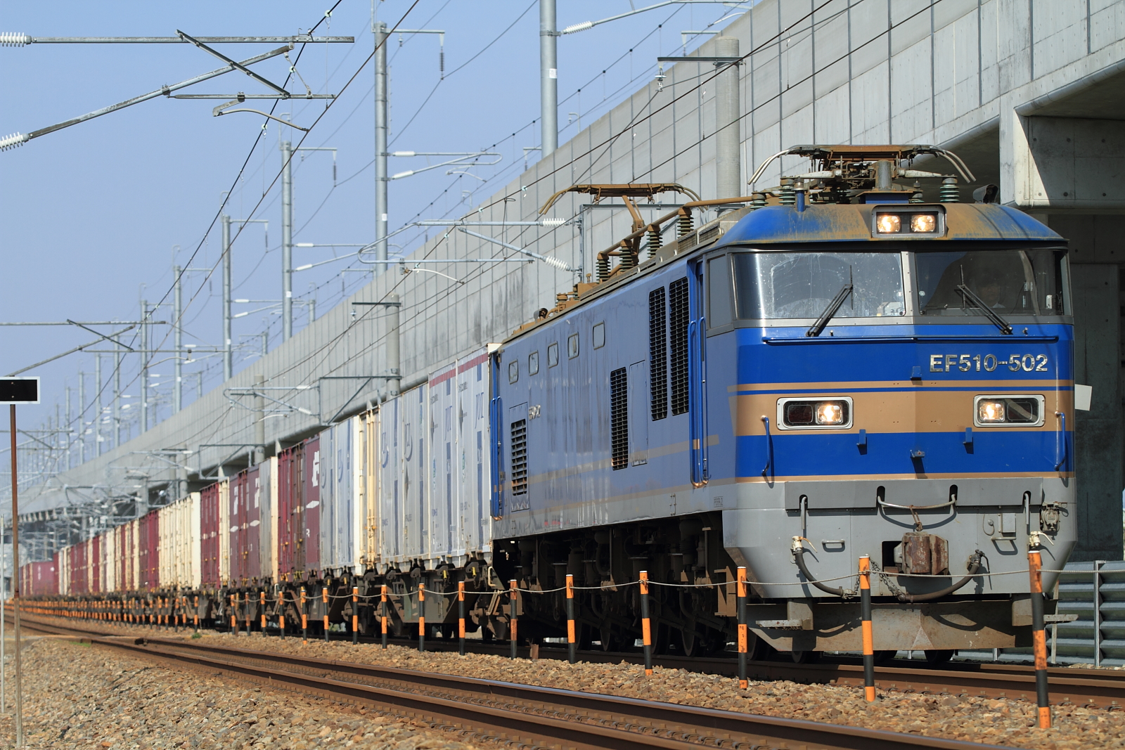 【北陸本線】4060レ撮影【EF510】 H27.4.23ダイヤ改正後の貨物列車は初の記録。 4060レ@松任〜野々市EF510 502号機牽引でした。良い時間に通過する4060レは日々記録したいところです。 [0回]