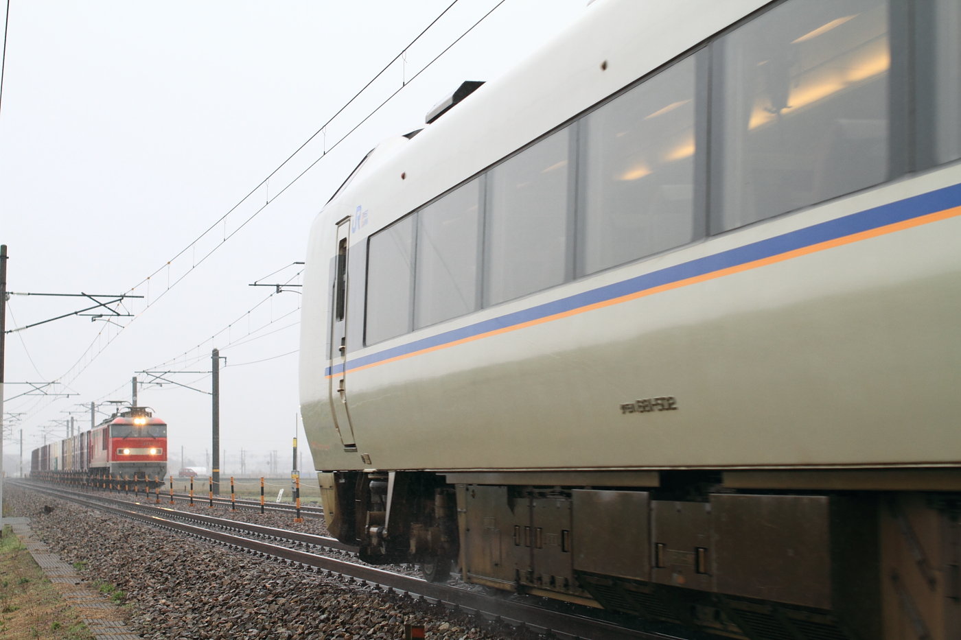 【七尾線】元SRE車が能登かがり火号代走【681系】 H27.3.24元スノーラビットエクスプレス色の681系が代走運用に入っています。23日に故障した68系の代走となります。 3005M(能登かがり火5号)@能瀬〜宇野気しらさぎ・ダイナスター・能登かがり火号の代走運用で、25日まで続く予定です。 [2回]