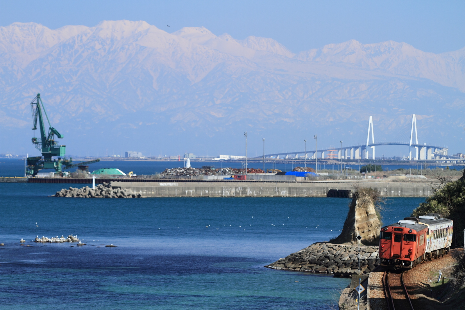 【氷見線】立山連峰をバックにキハ40/47【キハ40】 H27.3.27氷見を通ったので適当に記録。 キハ40とキハ47の2連でした。いつの間にか高岡色のキハを見なくなりましたが、まだ残っているのでしょうか… [0回]