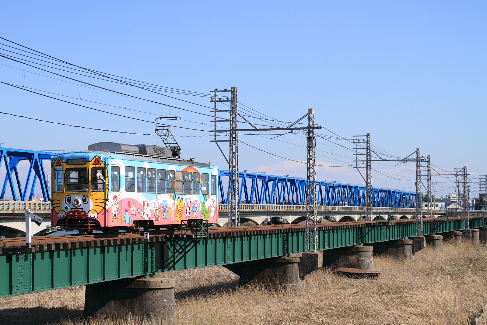 【万葉線】庄川を渡る万葉線【デ7072】 H27.3.27ぶらりと氷見線を記録した後、なんとなく万葉線を。 赤いのがMLRV1000、猫のやつがデ7072らしいです。JR以外はほとんど撮影しないので調べてみましたが、このデ7000形はかなり古いようですね。何気ない記録も大事ですね。。 [0回]