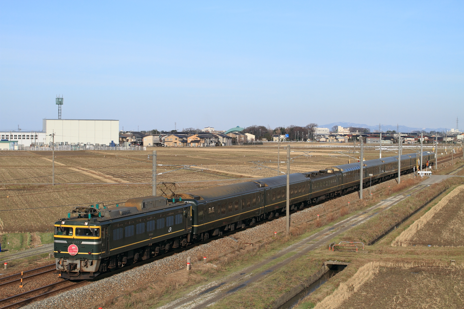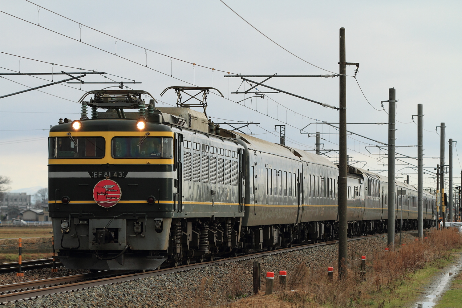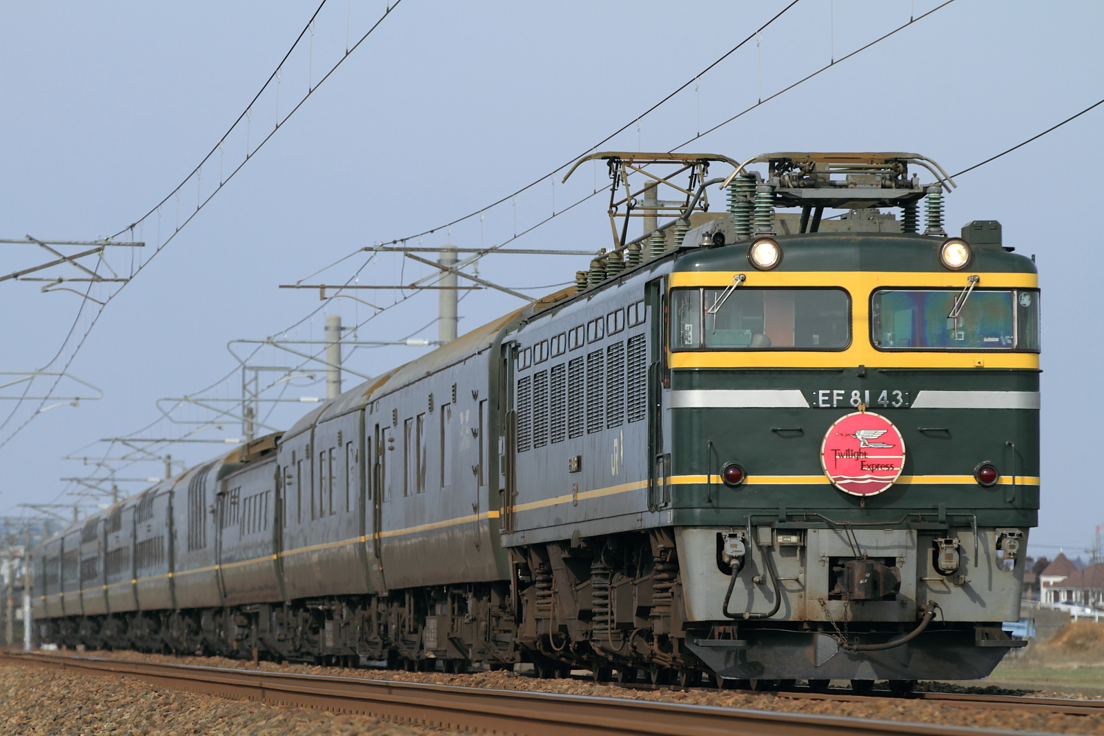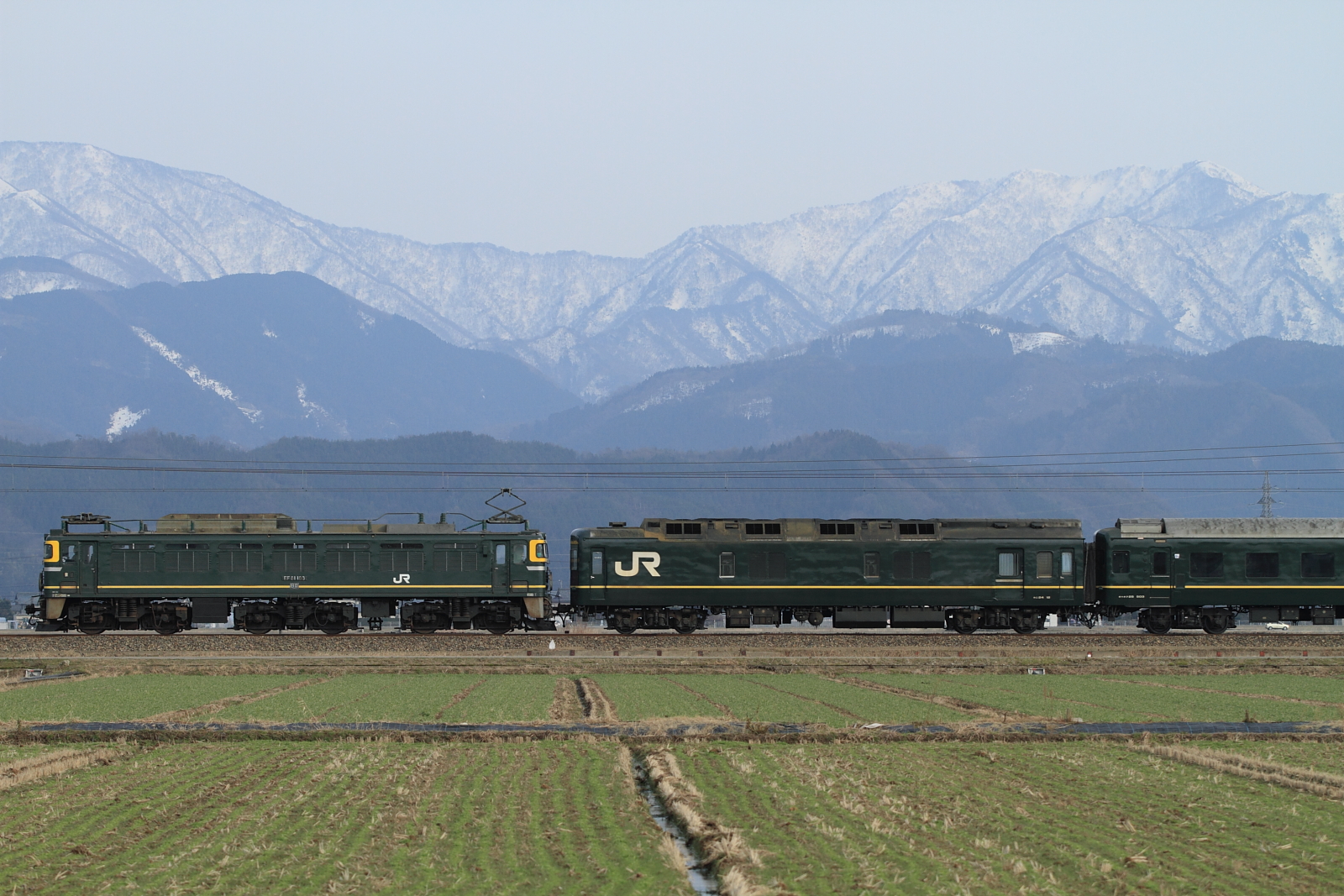 【北陸本線】9002レ・8001レ撮影 32【トワイライトエクスプレス】 H27.1.25少し天気が良かったので、定番ストレートでトワイライトエクスプレス号を記録。9002レ@丸岡〜芦原温泉EF81 43号機牽引でした。続いて8001レは山をバックに。 8001レEF81 103号機牽引でした。残り2ヶ月を切りました、、撮れる限り、記録します。 [0回]