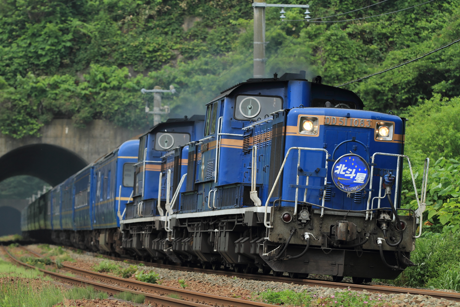 【室蘭本線】1レ撮影【北斗星】 H26.7.7約40分遅れの1レ(北斗星号)を撮影。 1レ@大岸~礼文DD51 1083+DD51 1100号機牽引でした。で、この折り返しの2レに乗車しました。この乗車レポも後日に…ちなみにこの日、トワイライトは運転無し、カシオペアは遅れで都合上撮影できず… [0回]