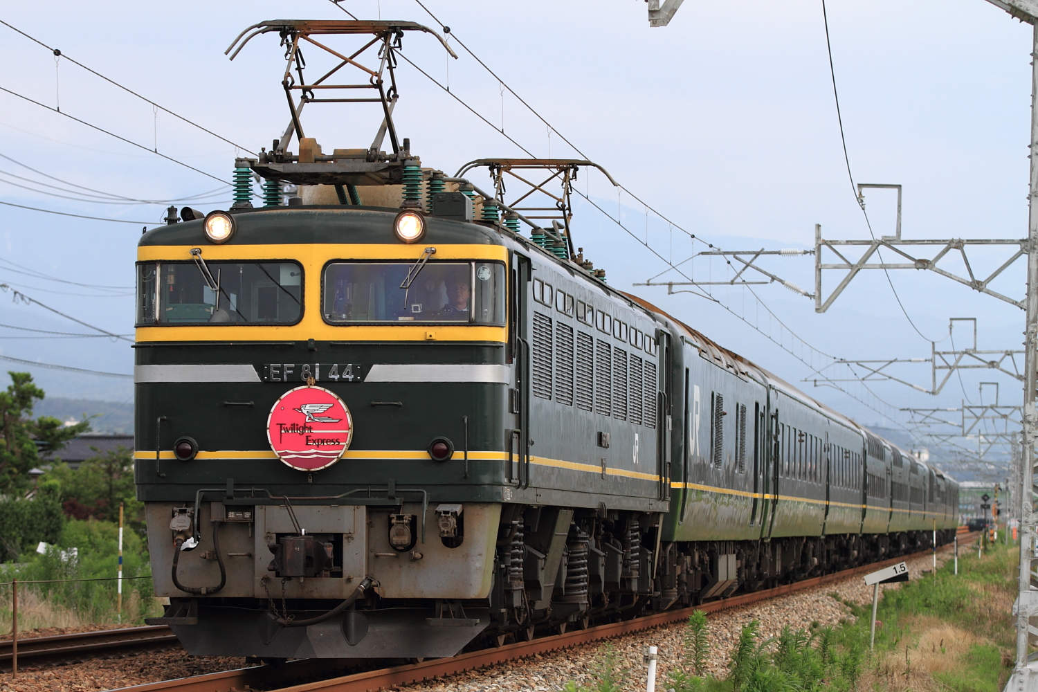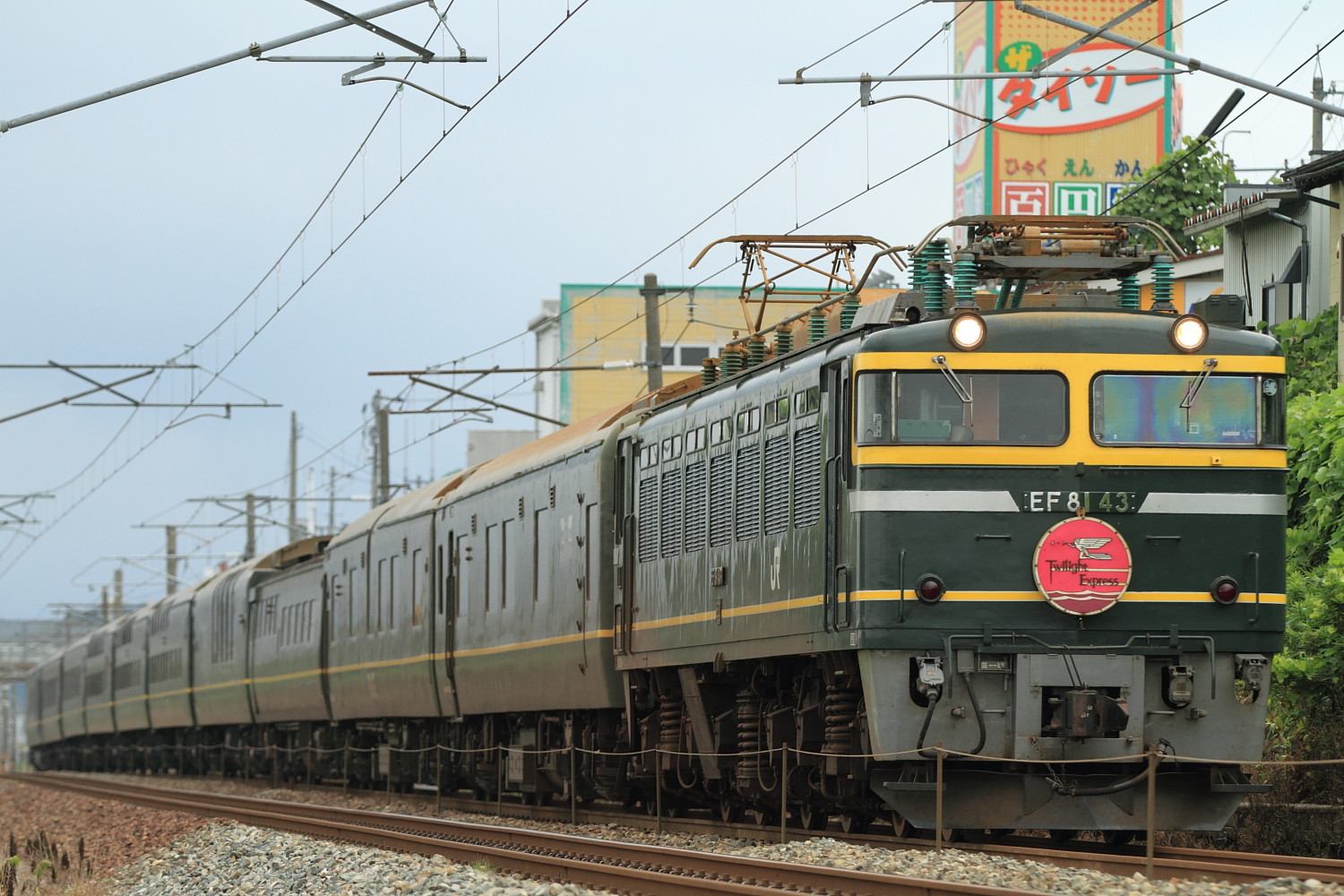 【北陸本線】8002レ撮影8【トワイライトエクスプレス】 H26.7.14お天気が悪かったので、8002レをダイソーストレートで。 8002レEF81 43号機牽引でした。…と、その前にやってきた475系6連も記録。 524M475系やトワイライト、記録し続けます。 [0回]