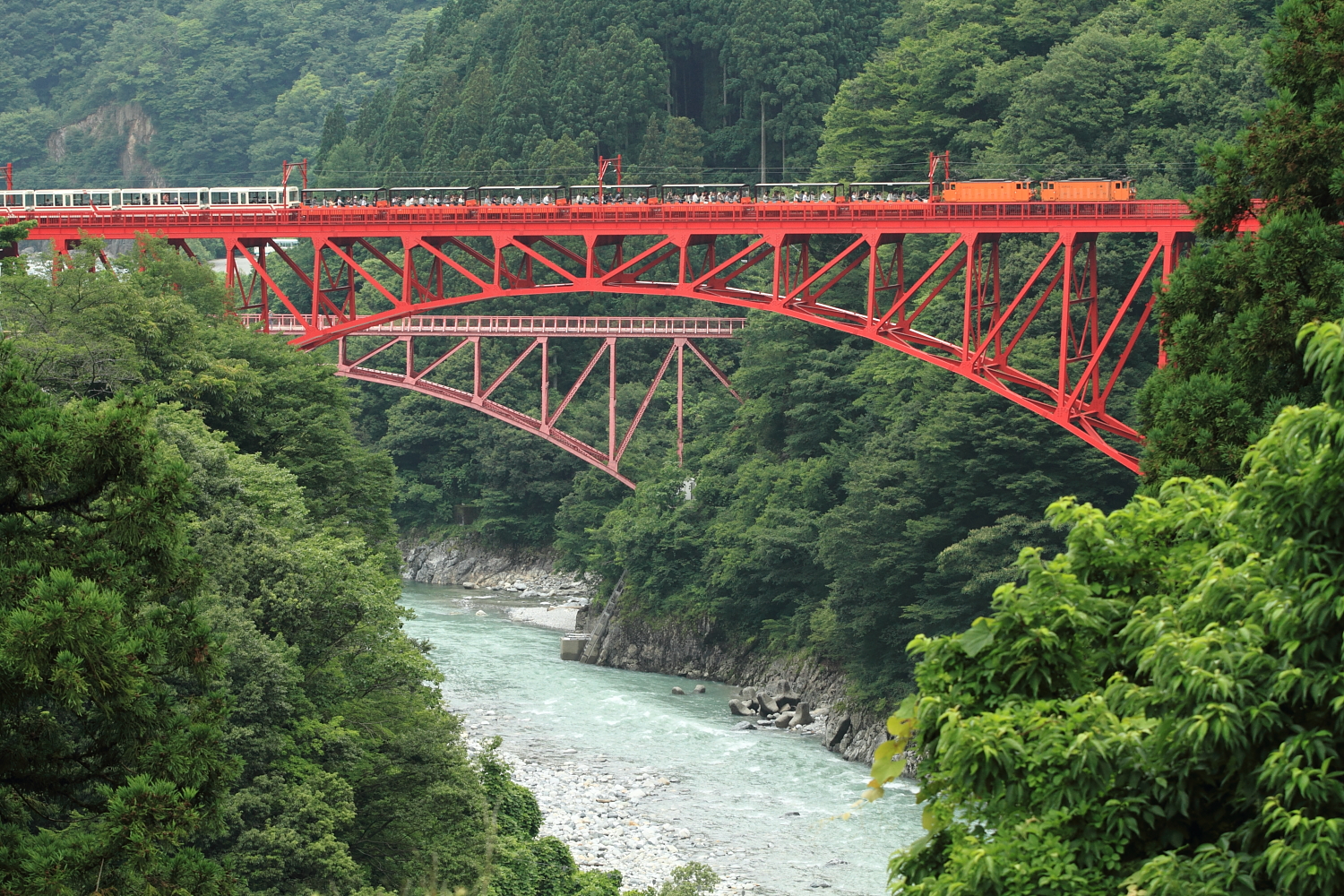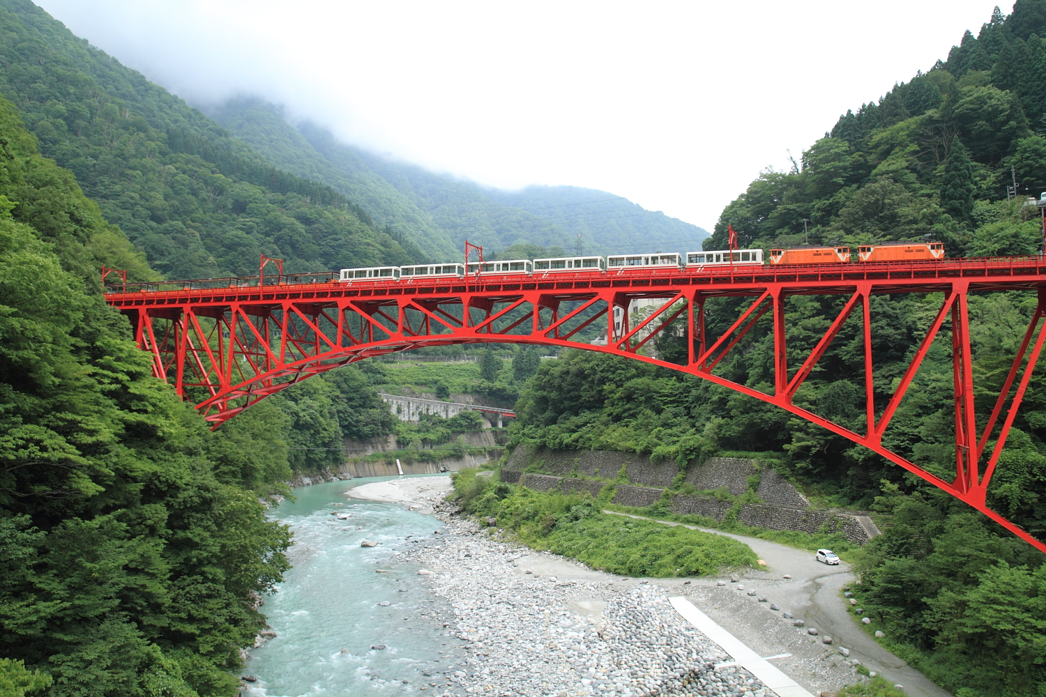 【黒部峡谷鉄道】トロッコ電車撮影【EDR形】 H26.7.17黒部のトロッコ電車を撮影。 まずは定番の鉄橋から。重連の電気機関車が警笛を鳴らして通過します。EDR形という形式のようです。 旅客列車は観光客でにぎわっていました。現在はヘッドマークも取り付けられています。 うなづき湖周辺で撮影。突然の豪雨に襲われつつ、宇奈月温泉とちの湯でほっこり。 最終の旅客列車が行ったあと、貨物列車も記録できました。 トンネル飛び出しを記録し、終了。このあとはトワイライト撮影へ続きます。 [0回]