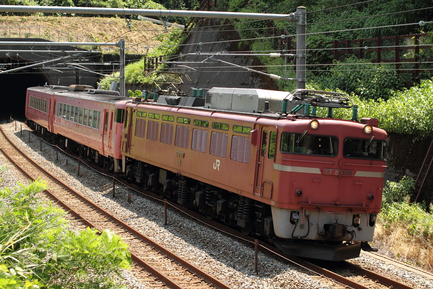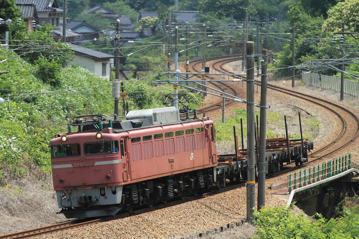 【北陸本線】工9572レ チキ撮影【EF81】 H26.6.19チキ2両から4、6両とどんどん増結して行く工9572レを撮影。 工9572レEF81 108号機牽引でした。高岡~津幡はチキ2B 工9572レ津幡~粟津はチキ4B 工9572レ粟津~向日町はチキ6B全て返却の空チキです。合間に撮影した貨物とトワイライトも 4076レEF510 505号機牽引でした。この青510もどんどん増え、北陸でよく見るようになりました。 8001レEF81 43号機牽引でした。こちらはチキ撮影の直前で、危うくかぶられるところでした…後追いのみの記録です。6月は忙しく、久々の撮影でしたが機関車がたくさん撮れて満足な1日になりました。 [0回]