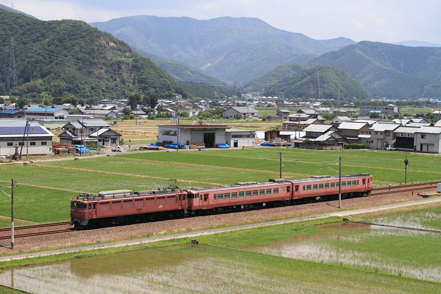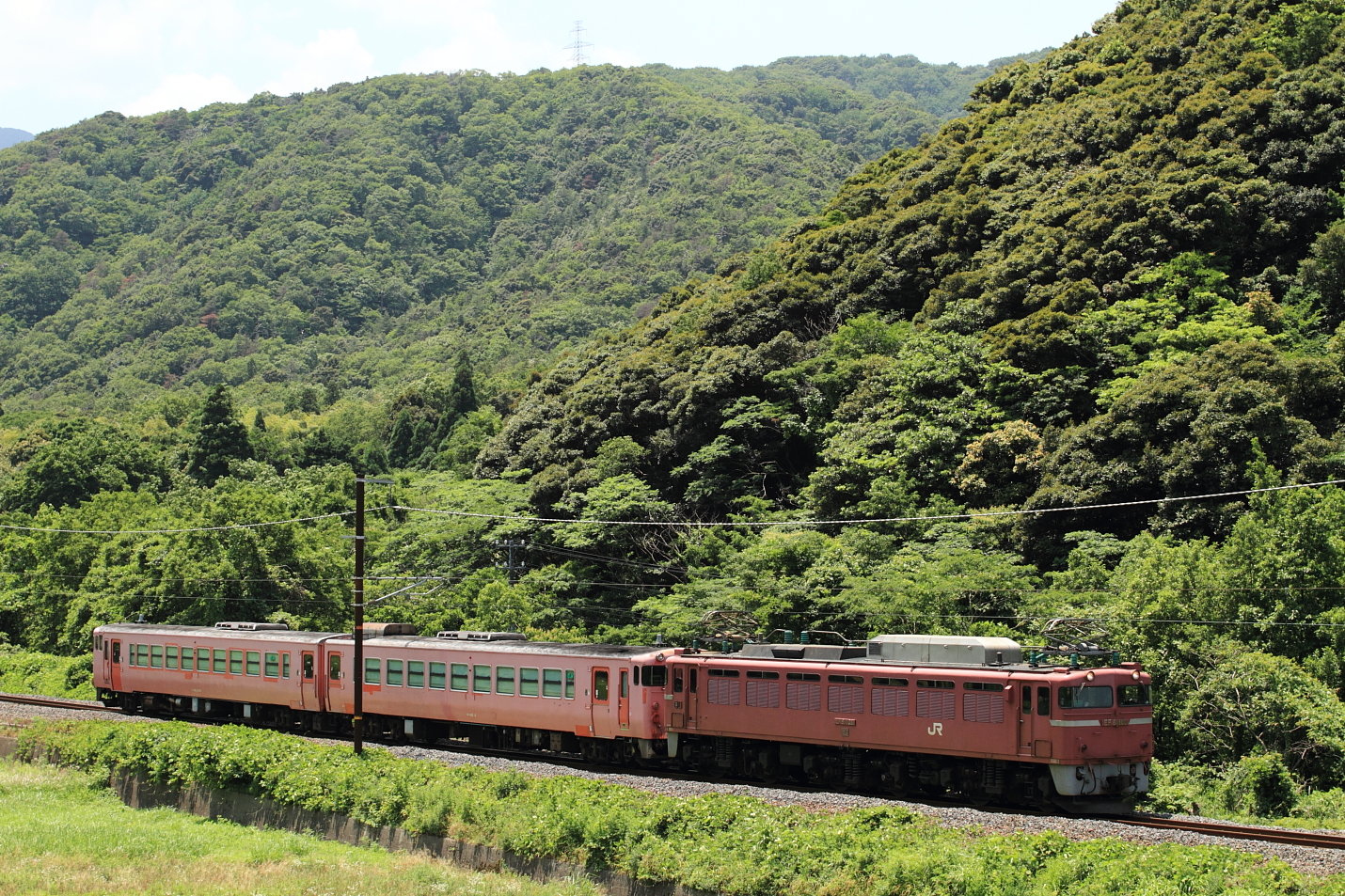 【北陸本線】配9381(キハ48)撮影【EF81】 H26.6.25JR西日本唯一のキハ48、新山口所属キハ48 4+キハ48 1004が金沢は松任へ転配されました。 配9381@新疋田~敦賀EF81 108号機牽引でした。 配9381@南条~王子保 配9381@牛ノ谷~大聖寺良い天気の中、同系色の3両で松任へ。今後のキハ48の動きが気になりますね。 [0回]