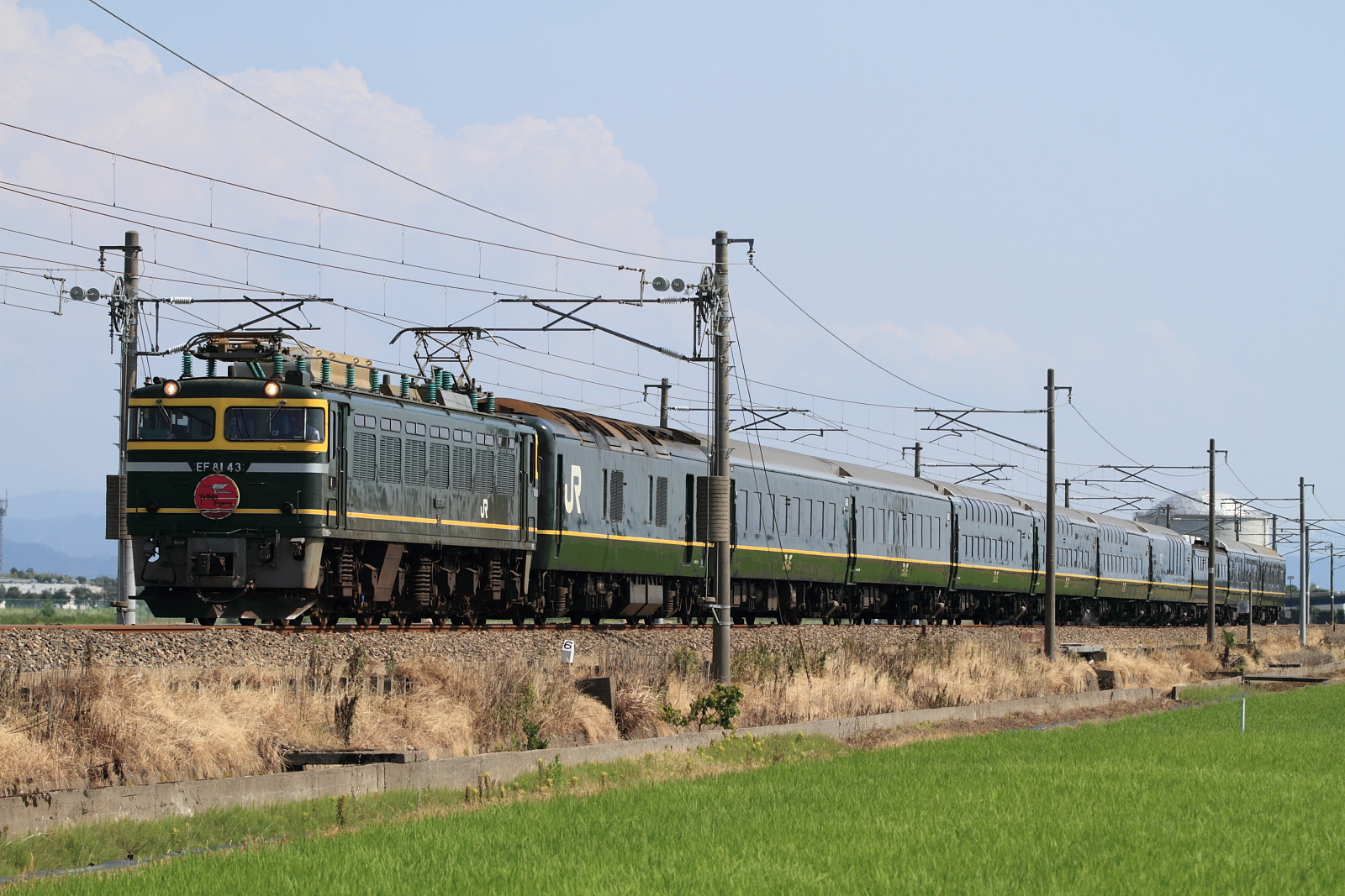 【北陸本線】8001レ・8002レ撮影6【トワイライトエクスプレス】 H26.7.1良い天気だったので、田んぼを入れてトワイライトエクスプレス号撮影。…の前にやってきた3097レ。 3097レEF81 726号機牽引でした。 8002レEF81 43号機牽引でした。午後も良いお天気でどこで撮ろうか迷っていたところ、決まらず… 8001レEF81 114号機牽引でした。流し撮りで。これからも様々なトワイライトを記録していきます。 [0回]