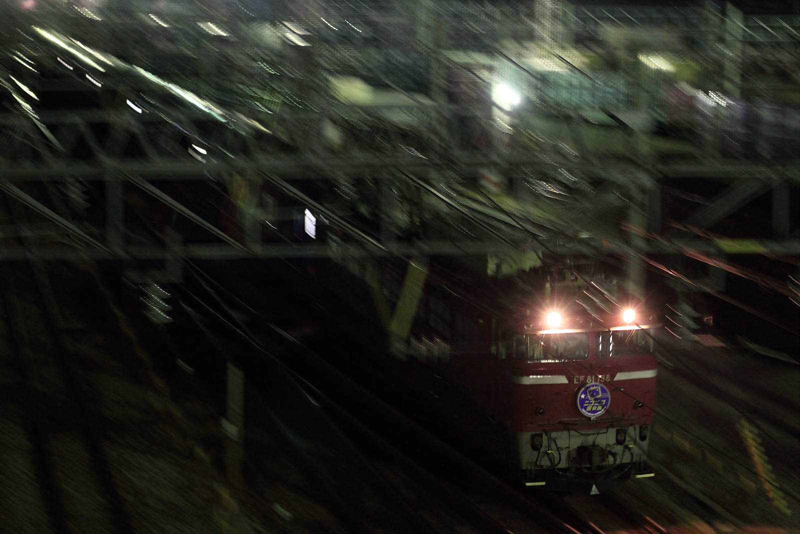 【北陸本線】ニコニコ超会議号撮影【EF81+24系】 H26.4.26大阪から上野へ、長岡経由の「24系ブルートレインで行くニコニコ超会議号」を撮影。 9513レ@金沢~東金沢牽引はEF81 138号機でした。ヘッドマークも取り付けられているのが、また良いですね。 [0回]