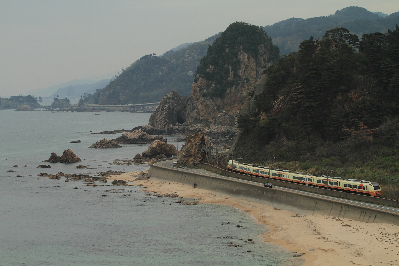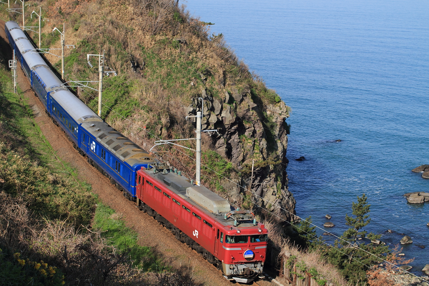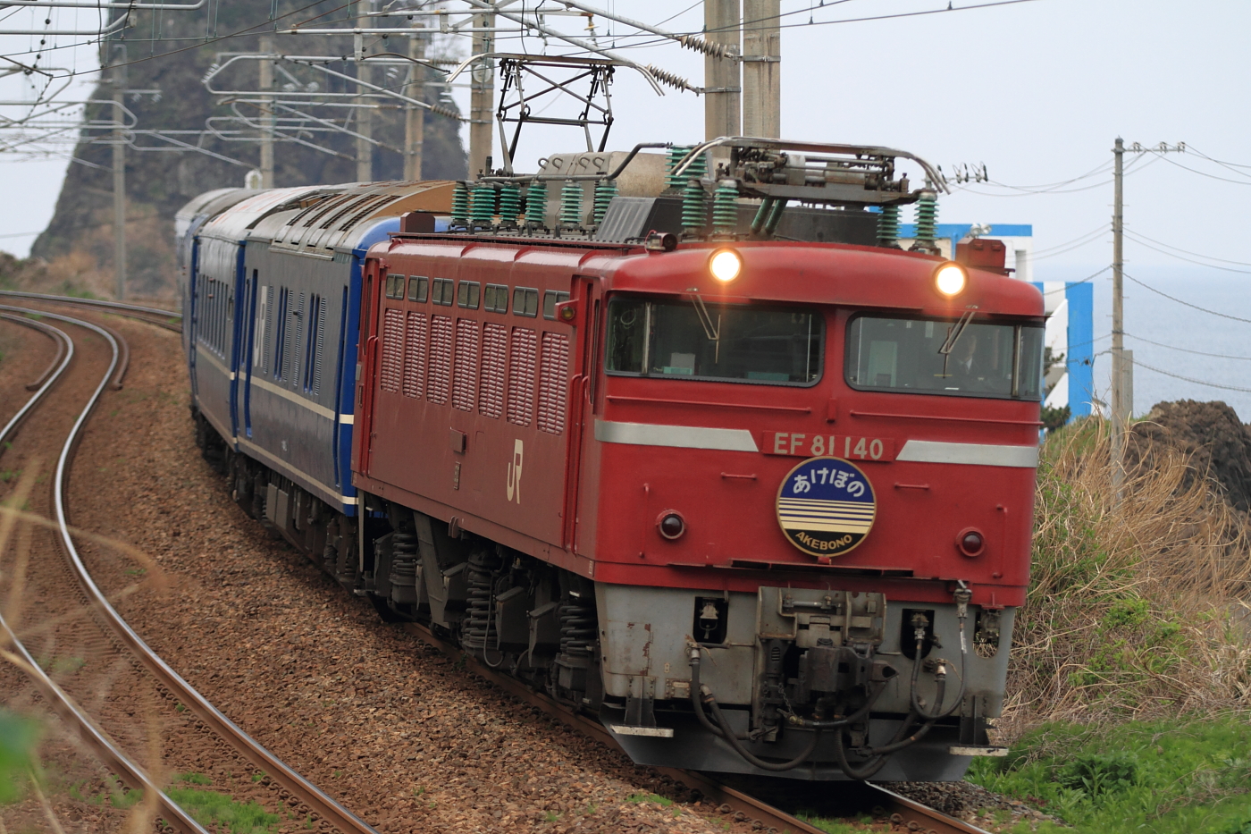【羽越本線】臨時寝台特急あけぼの号撮影1・485系撮影【24系】 H26.4.28定期列車から臨時列車になった、寝台特急あけぼの号を撮影しに羽越本線へ。 @あつみ温泉~五十川EF81 140号機牽引でした。ピン甘のうえ、構図ミス※トリミング済ひどい結果に。撮影後は、あつみ温泉の200円で入れる温泉へ行き、朝からほっこり。さぁ気を取り直して、羽越本線撮影です。 485系いなほ号いろいろ撮影したので、撮影地覚えていません。wいつのまにか、485系の運用激減、新潟~酒田のみの運転になっていたのですね。ちなみに羽越本線の撮影は583系(あけぼの表示)以来です。 名勝「笹川流れ」での撮影は初めてでしたが、天気はイマイチでした。このキハ47の4連は交直区間の……いろいろ理由があるのでしたね。 新旧いなほ号(E653と485系)を撮影し終了。GWなので狙った貨物4060レはウヤでした。一旦帰宅し…まさかの翌日へ続きます。。。 [0回]