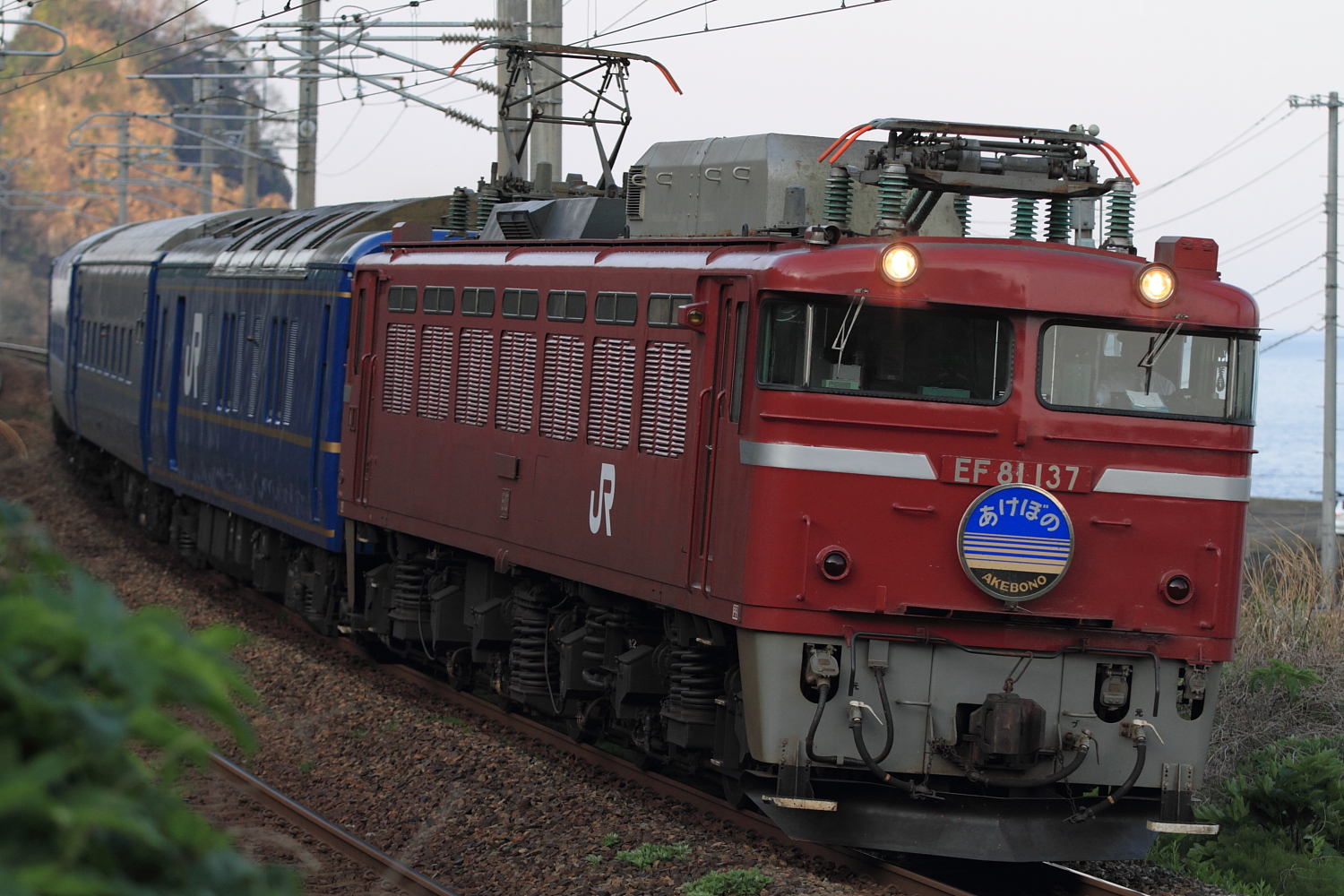 【羽越本線】臨時寝台特急あけぼの号撮影2【24系】 H26.4.29イマイチだったので、羽越本線撮影2日目となりました。今回も日が当たらないとわかっていながらも初日と同じ場所で撮影。 臨時寝台特急あけぼの号@あつみ温泉~五十川この日はEF81 137号機牽引でした。初日はここで終わっていましたが、酒田での停車があったり、高速道路が発展していて先回りできることが初日に判明、追っかけです。途中、濃霧や青空が広がり、田園風景の「あけぼの号」を横目に秋田県内へ。 @小砂川~上浜警笛を鳴らし、素晴らしい天気の中、寝台特急あけぼの号が通過。50mm単焦点でカツカツですが、良い記録となりました。この日の撮影はこれで終わり。国道沿いの遊佐で海鮮丼食べたり、あつみ温泉でほっこり、カフェでまったりしながら帰宅しました。 [0回]