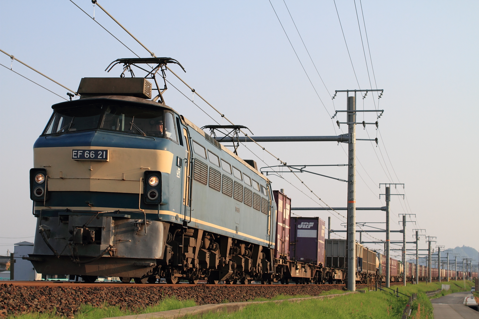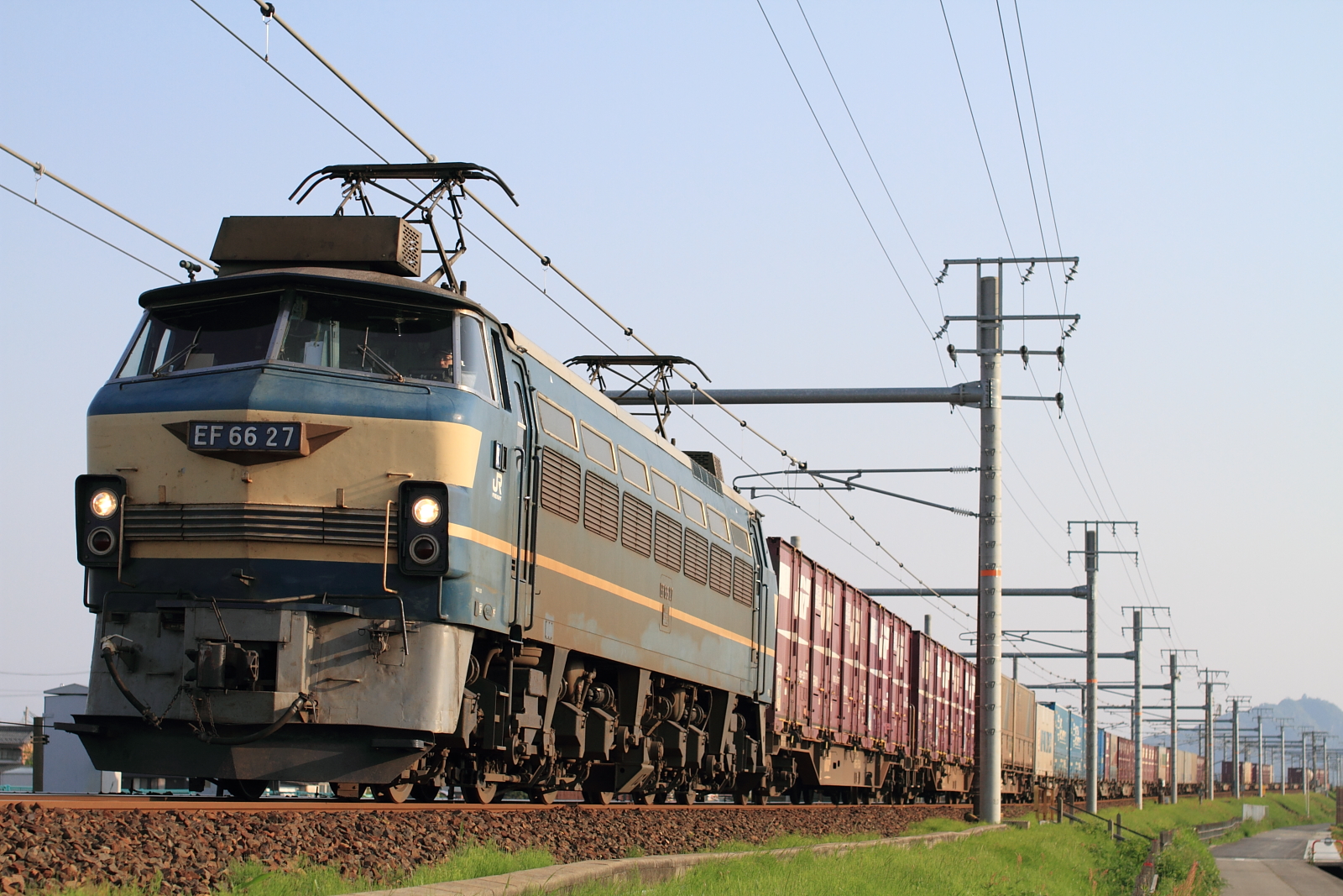 【東海道本線】EF66 21・27号機牽引貨物撮影【EF66】 H26.5.10まだまだ活躍を続ける、EF66の貨物列車を撮影。 1094レ@岐阜~木曽川 5052レ早朝、EF66 21号機と27号機が連続で通過。0番台は東海道線からどんどん姿が減ってきています。EF66は貨物列車というより、寝台特急を牽引しているイメージが強いです。 [0回]PR