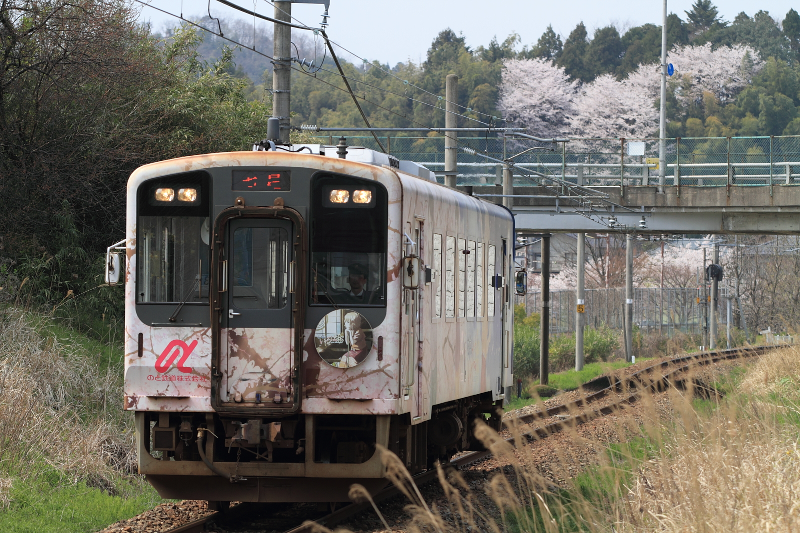 【のと鉄道】花咲くいろはラッピング列車とミッキー桜 20【NT202】 H26.4.16七尾では有名?なミッキー桜をバックに撮影。 2028M681系W01ヘセのプロト編成でした。 NT202も桜と。今年は桜も長く、きれいですね。 [0回]