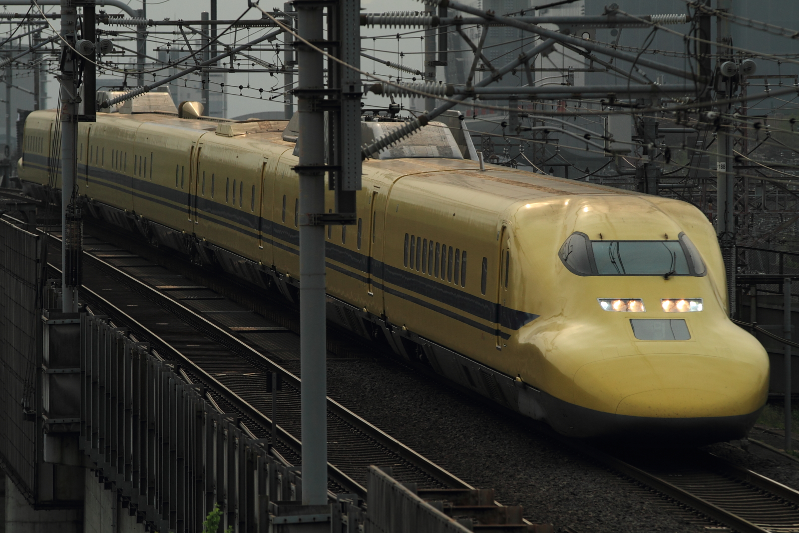 【東海道新幹線】T4編成検測【ドクターイエロー】 H26.4.17923系T4編成(JR東海)、いわゆるドクターイエローを京都付近で撮影。普段は新幹線に興味も無く、ほとんど撮影したことはありません…過去に2009年に田町付近でT5を撮影したのは覚えていますが。 700系は少しずつ減っているようで。ホント、新幹線は知らないのです… 923系T4ヘセこの923系というのも、たった今調べました。なかなか面白いのですね。北陸にも新幹線が走ることだし、少しずつ…という感じですかね。 [0回]
