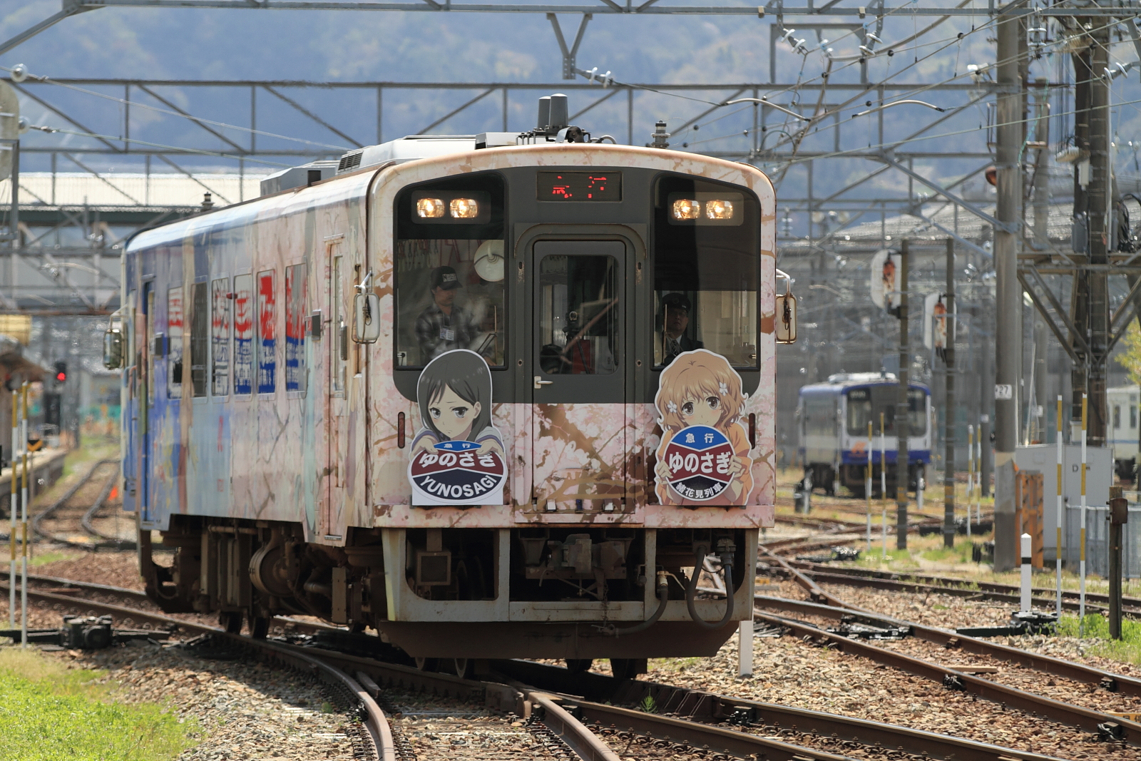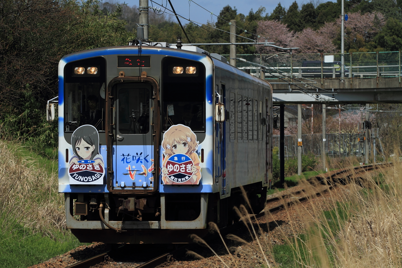 【のと鉄道】花咲くいろはラッピング列車 「御花見列車」急行ゆのさぎ 21【NT201】 H26.4.19のと鉄道花咲くいろはラッピング車NT201を使用した団体列車が運転されました。 ミッキー桜をバックに…もう見頃は終わってますね。ダブルヘッドマークでの運転でした。 今回のダイヤ改正で七尾駅下2にNT200が留置されるようになったので、413系もちらっと入れて撮影。都合上、今日のコレしか撮れませんでした。残念。 [0回]PR