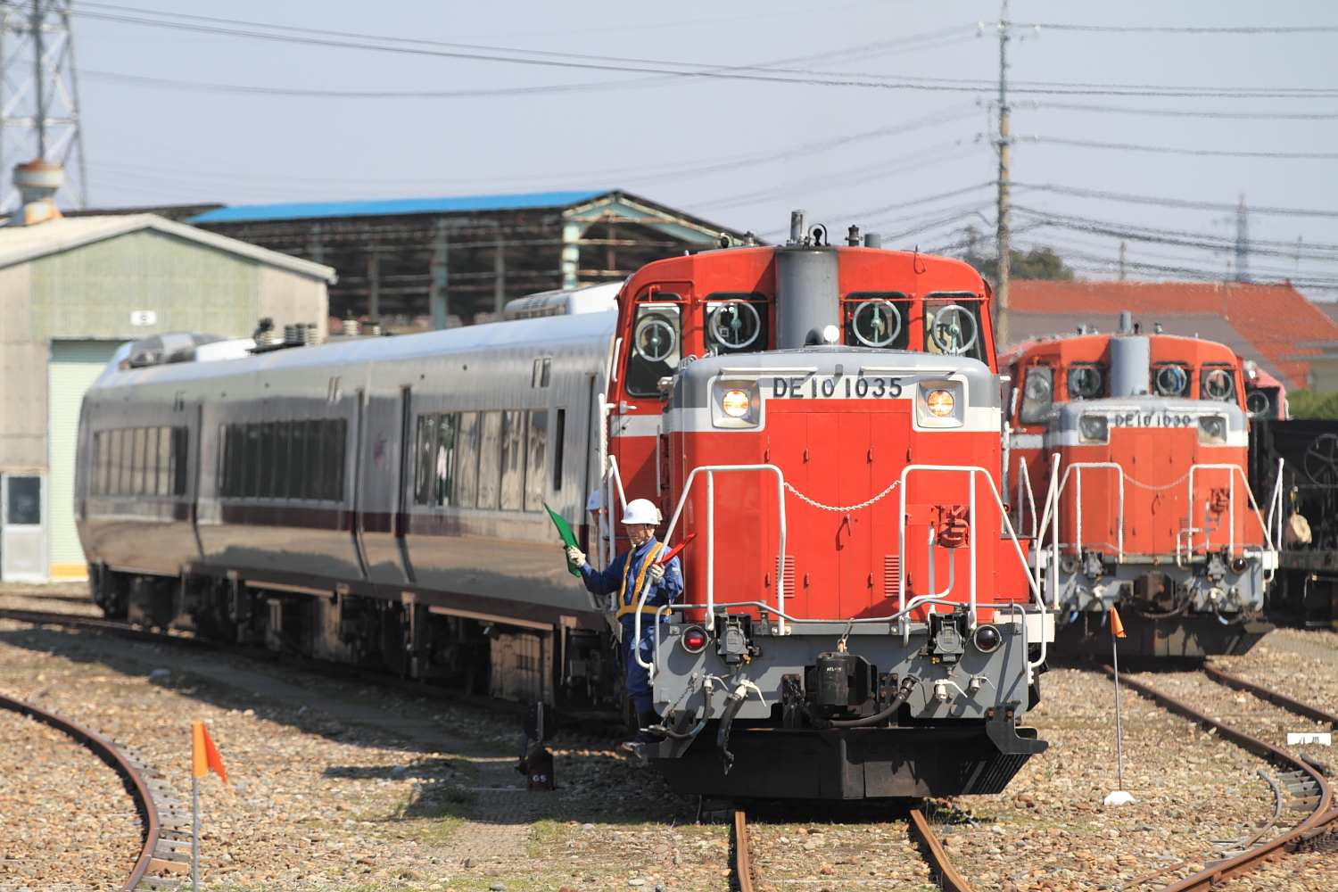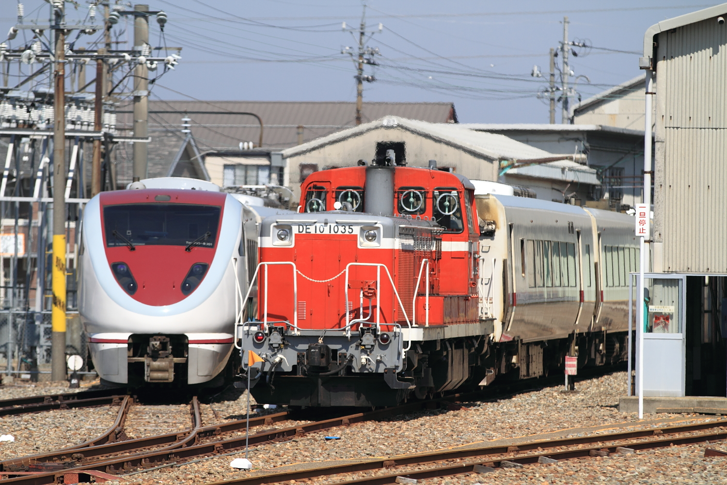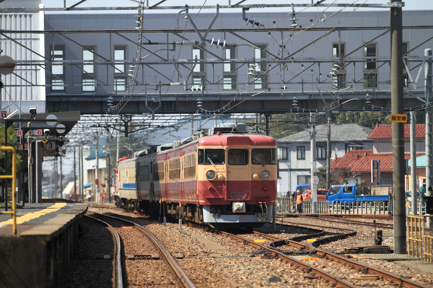 【北陸本線】A06+A13編成松任へ回送【457・475系】 H26.3.24A06とA13ヘセが廃車のため松任へ回送されました。 回9264M@野々市~松任とてもゆっくりした回送スジで運転され、松任へ。 松任到着後、DE10が連結され… 奥の方へと押し込まれて行きました。綺麗な状態のままで、廃車とは思えない姿で…久々に松任へ行きましたが、見ていると面白いのですね。 DE10は先日のパンタ損傷の683SREを移動させたりしていました。 [0回]
