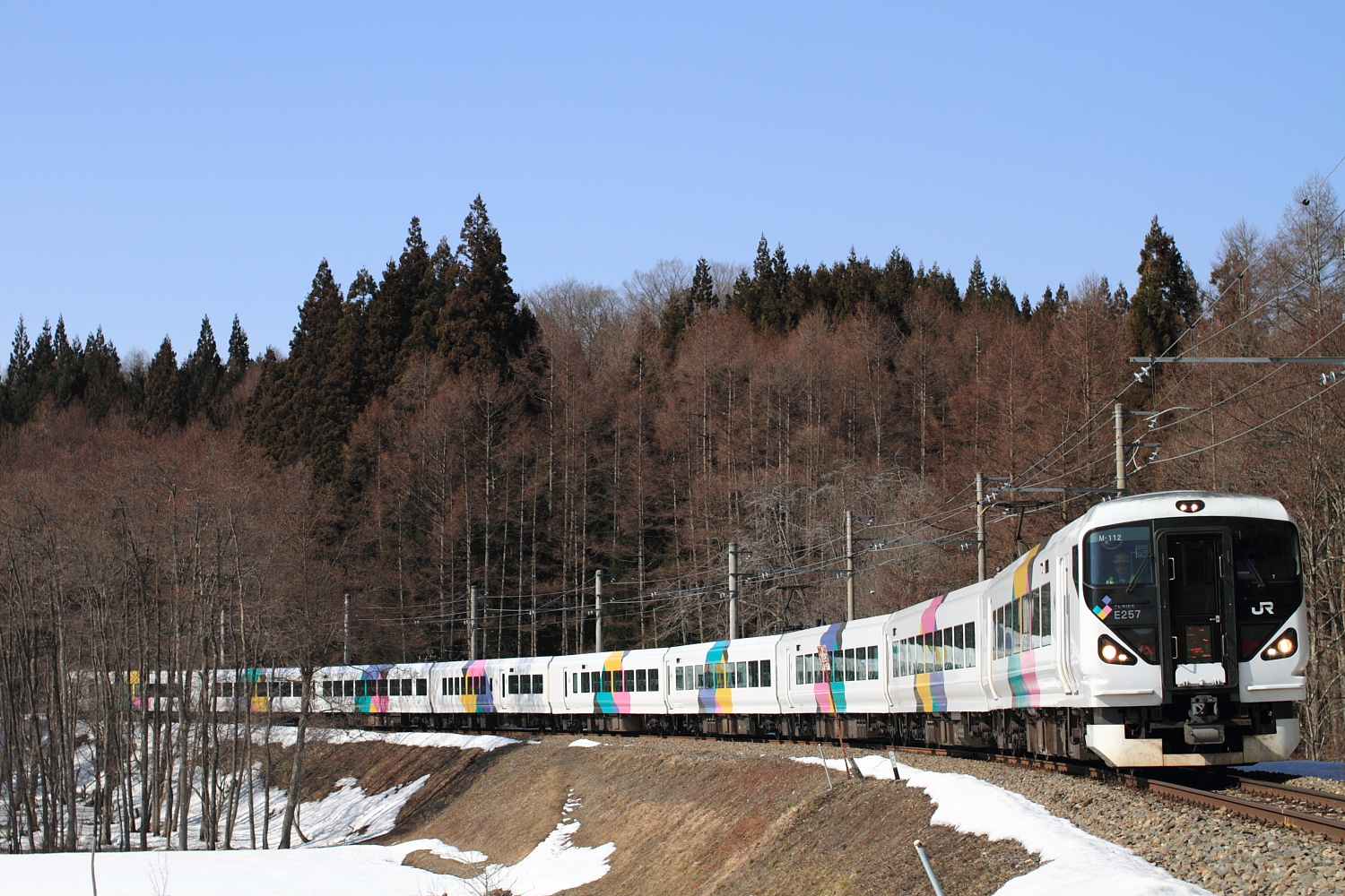 【大糸線】あずさ号とRVふるさと撮影【E257】 H26.3.27ロクヨン重連撮影のあとは、大糸線経由での岐路で撮影。 晴天の下、あすさ号を。 RVふるさとも記録。まだ雪の残る大糸線、気持ちの良い撮影でした。 [0回]