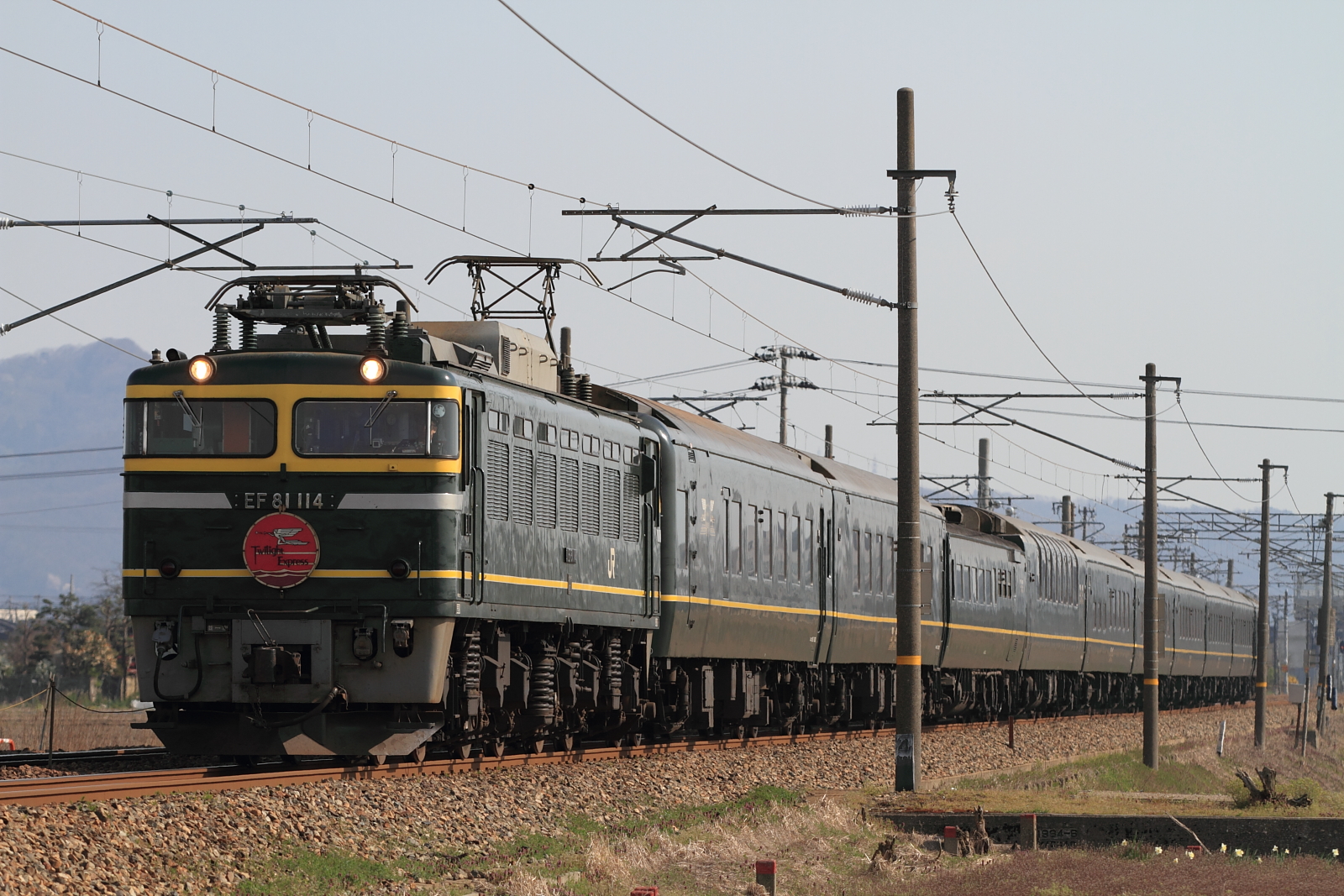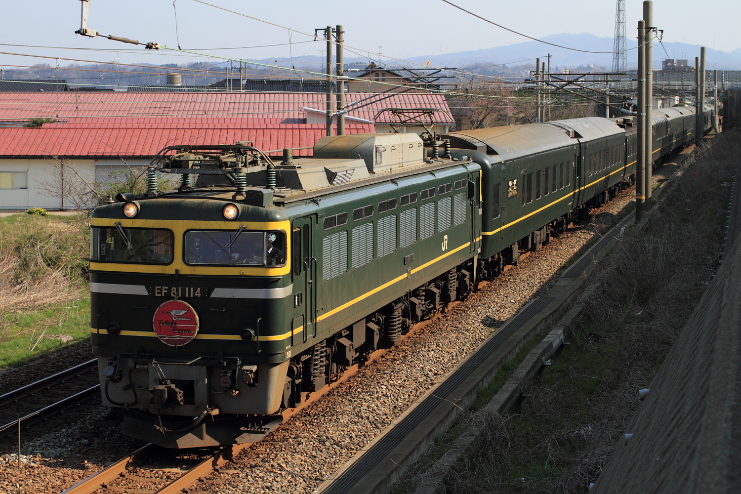 【北陸本線】8002レ撮影2【トワイライトエクスプレス】 H26.4.78002レを安楽寺で撮影。 8002レEF81 114号機牽引でした。この区間で撮影すると、だいたいスシから水を排出しながら走っている気がする… [0回]