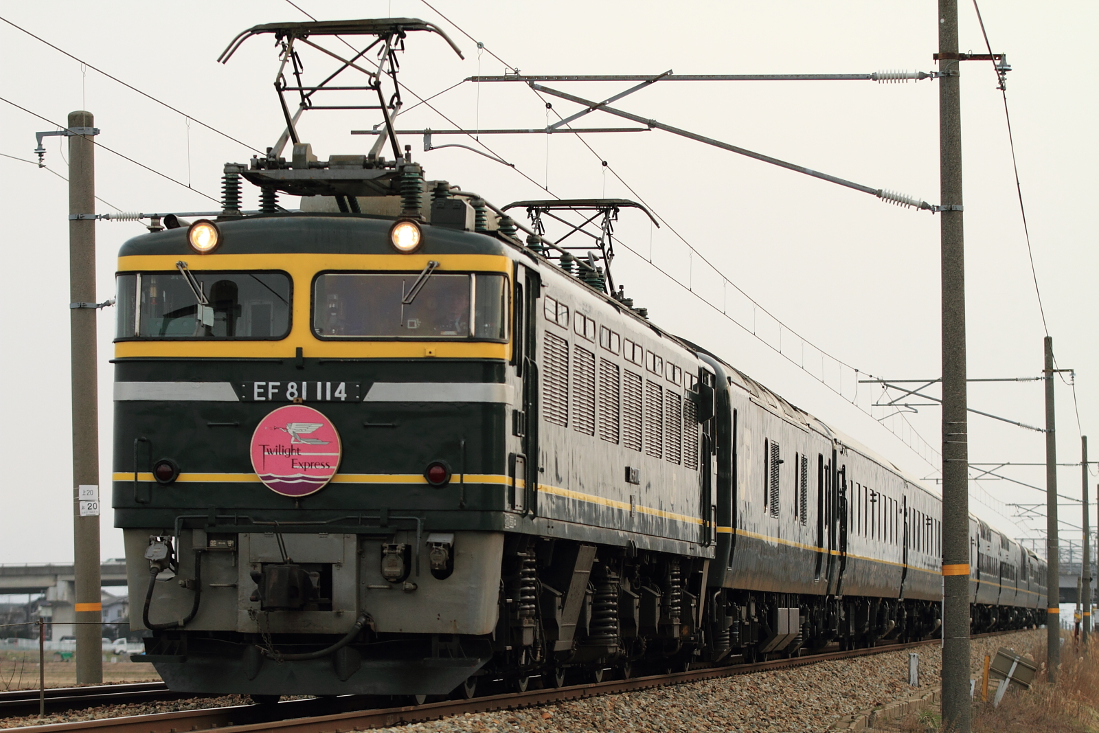 【北陸本線】トワイライトエクスプレス号撮影【8001レ】 H26.3.12ダイヤ改正直前、甲種撮影のあとは8001レを撮影。 8001レ@富山~東富山EF81-114号機牽引でした。やはり客車列車は良いですね。毎年言ってますが、今年こそトワイライトエクスプレスを徹底的に撮影し、乗りたい! [0回]