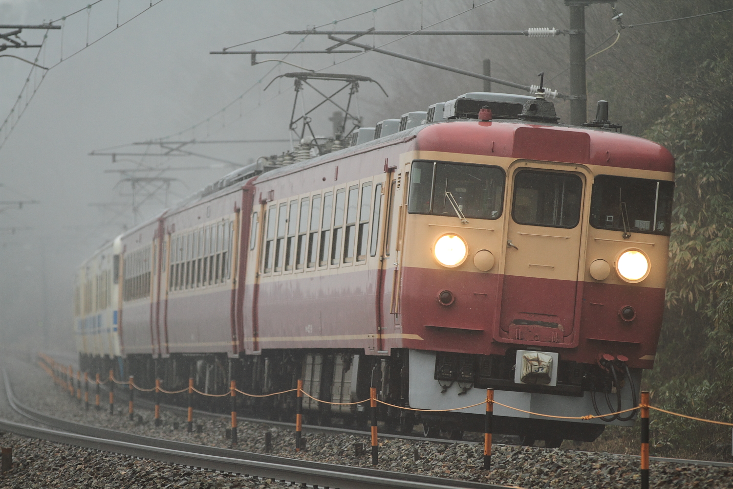 【北陸本線】A13ヘセ撮影【457・475系】 H26.3.18ダイヤ改正後も457・475系の記録をし続けます。 悪天候の中、A13ヘセを。 3097レ EF81 627霧の中の撮影でした。今年度は貨物も積極的に撮影!…予定です。 4076レ EF510 511青いEF510も記録。 4076レ EF510 511EF81の貨物が減りつつあるようで、早めにですね。 [0回]